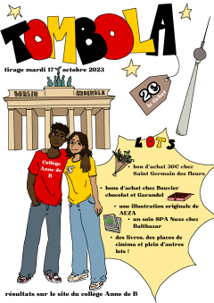 Pour financer le projet solidaire « Berlin ensemble », les élèves germanistes de 3e organisent une tombola.