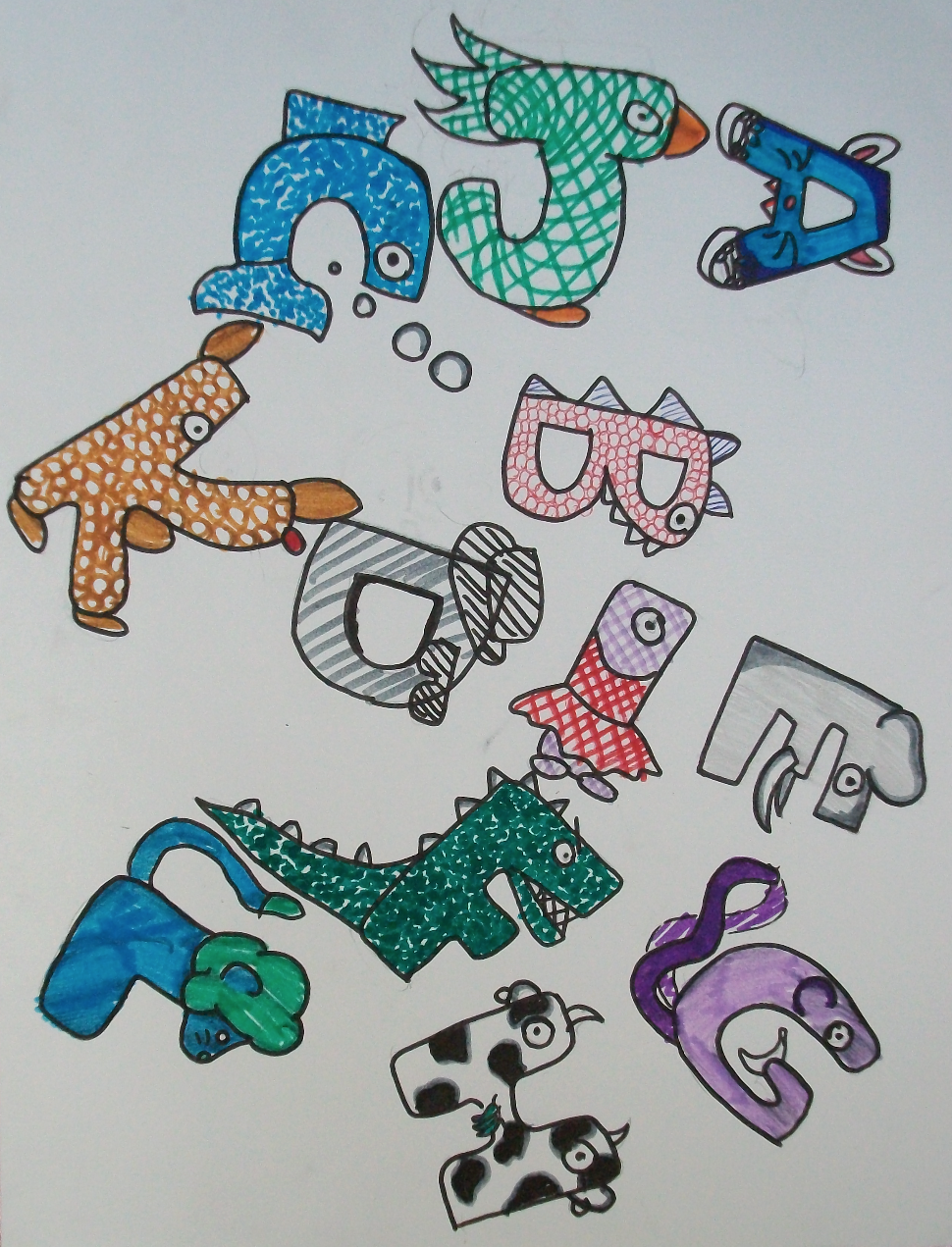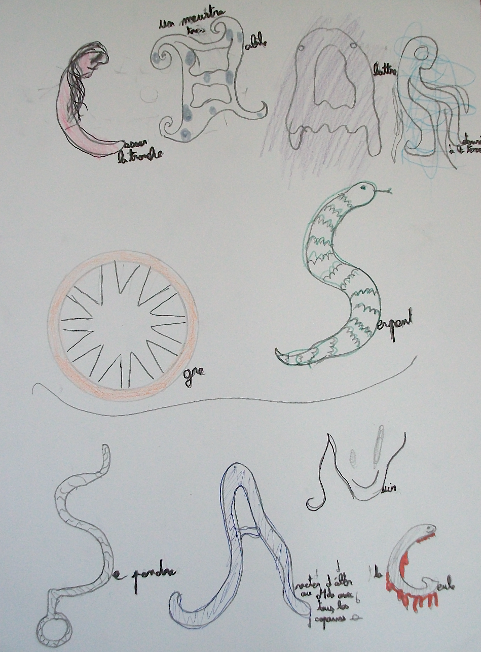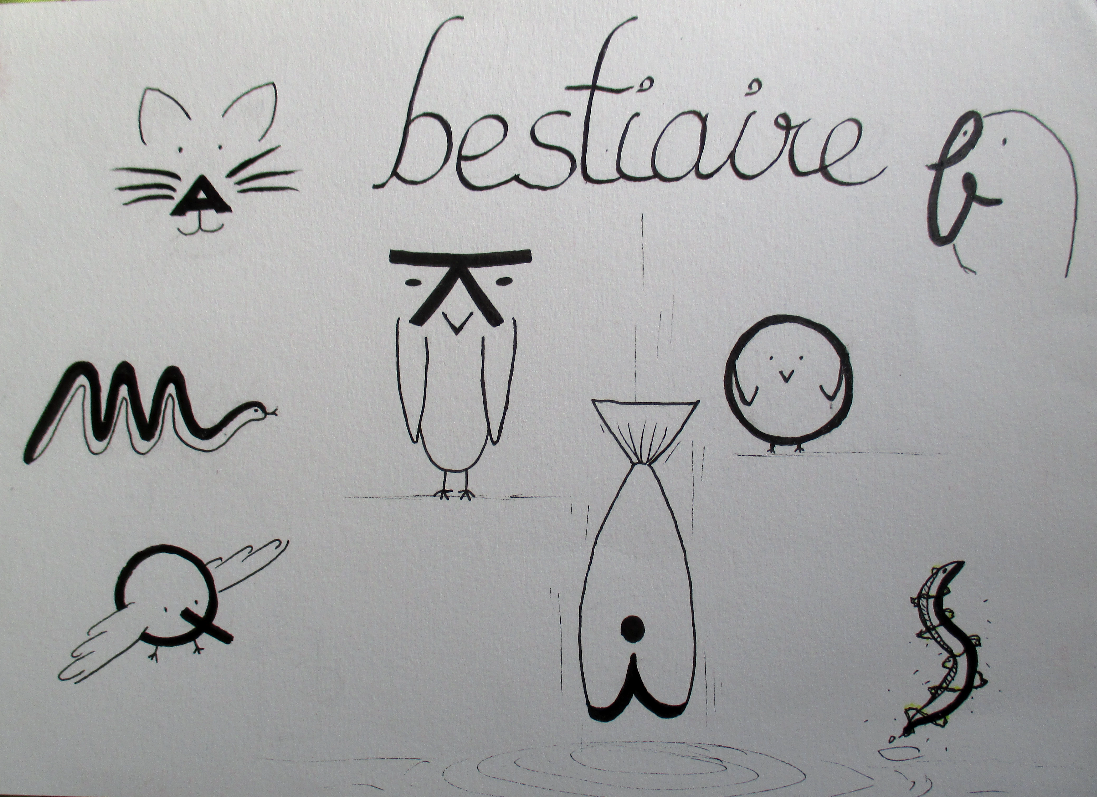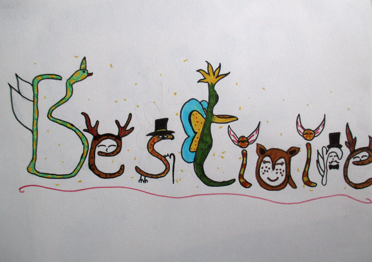 Mots clés : Bestiaire, lettrine, abécédaire, zoomorphe, anthropomorphe, déformation…. Ce sont des êtres bien étranges qui ont peuplés les feuilles des élèves.