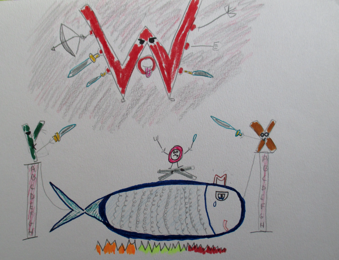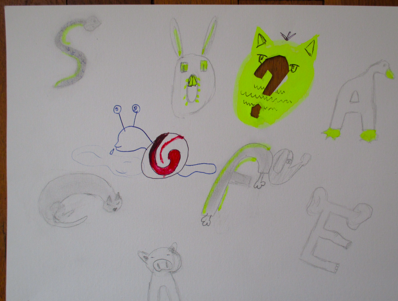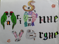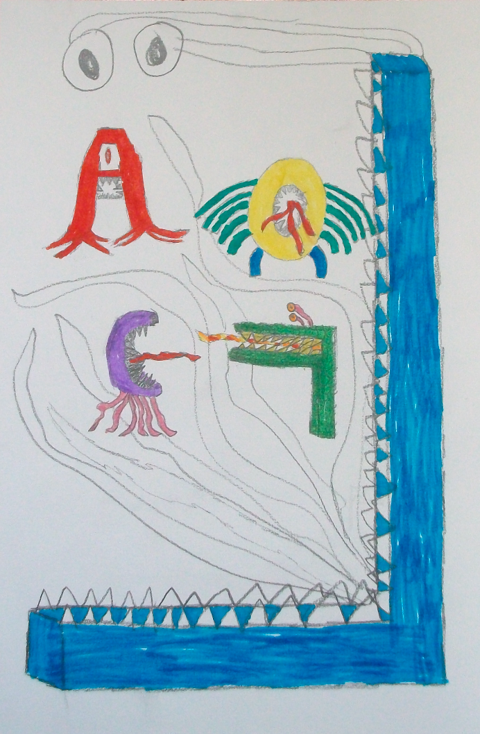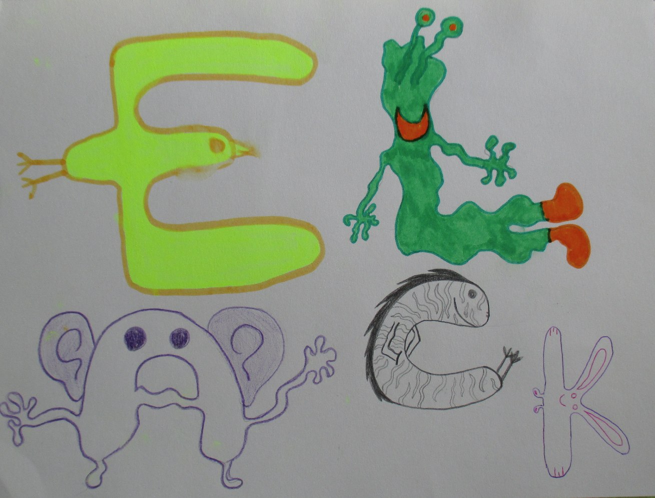 Mots clés : Bestiaire, lettrine, abécédaire, zoomorphe, anthropomorphe, déformation…. Ce sont des êtres bien étranges qui ont peuplés les feuilles des élèves.