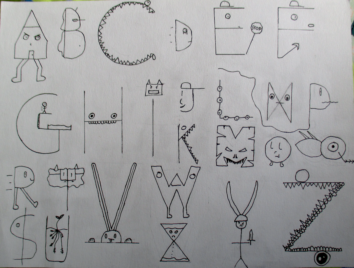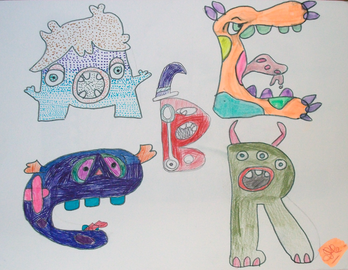 Les classes de 5M, 5A, 5C, 5S ont réalisé une recherche graphique à partir des lettres de l’alphabet, en leur donnant vie….