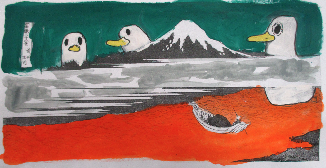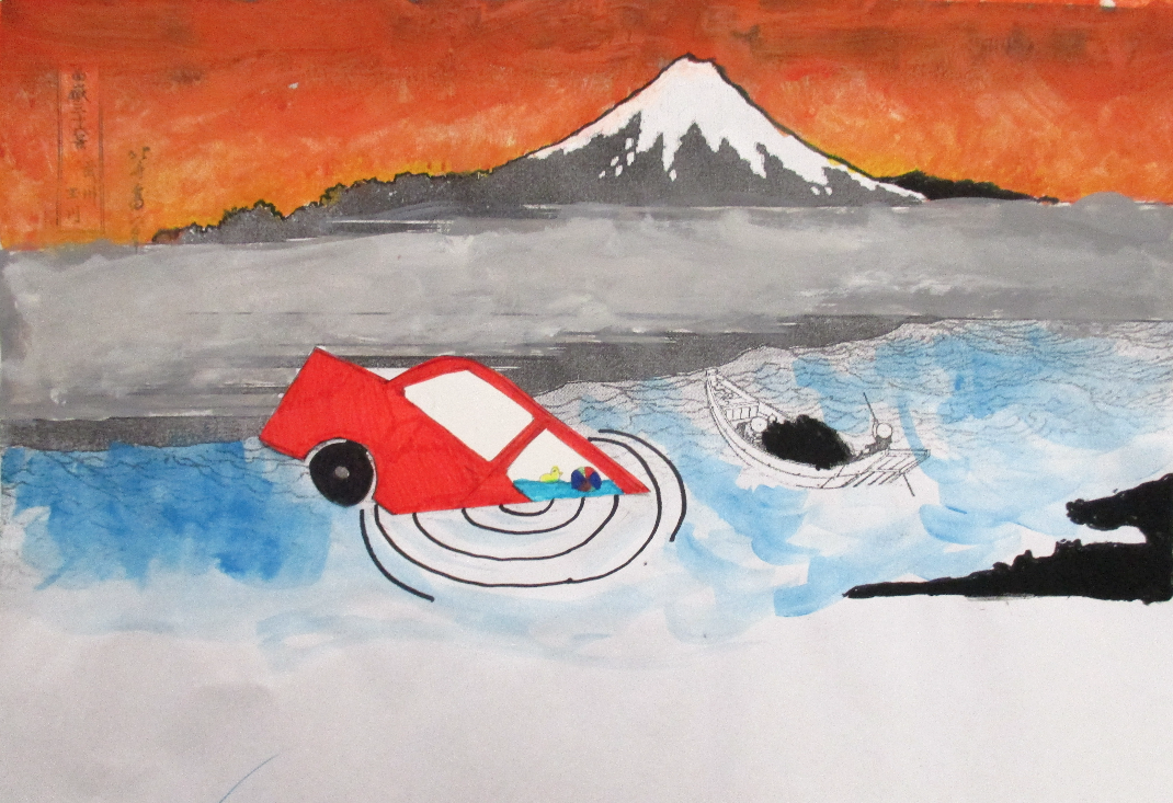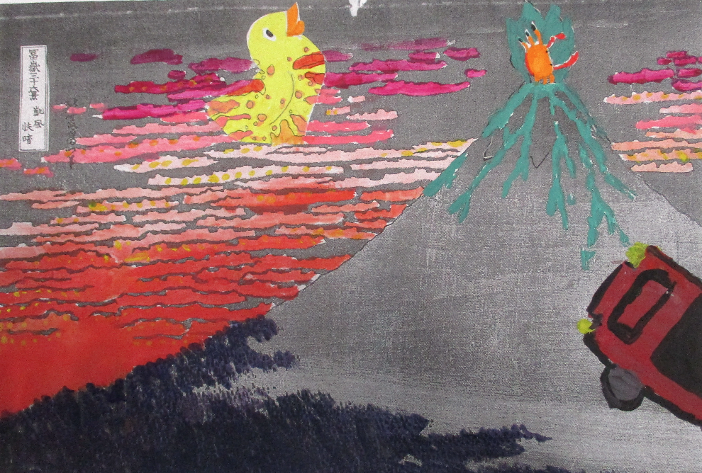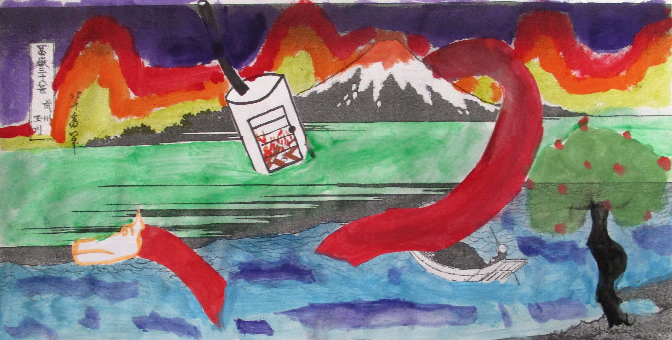 Les classes de 4D, 4S, 4M et 4E ont détourné , un des chef d’œuvre d’Hokusaï de la série du mont Fidji, dont " La grande vague".