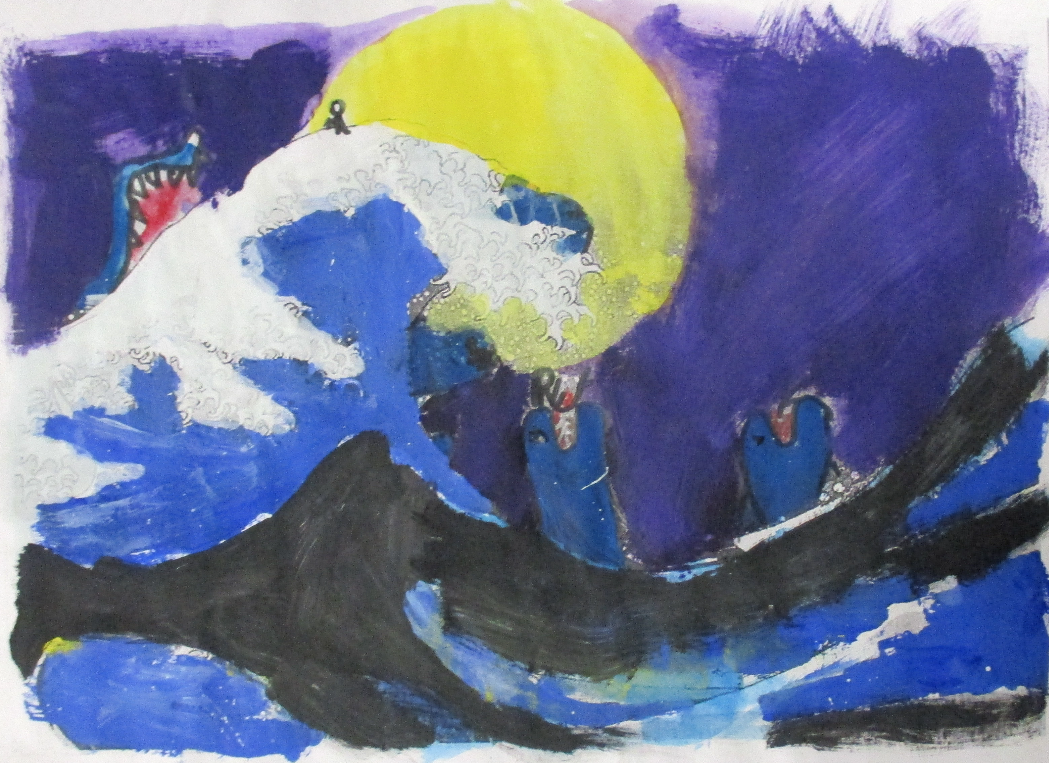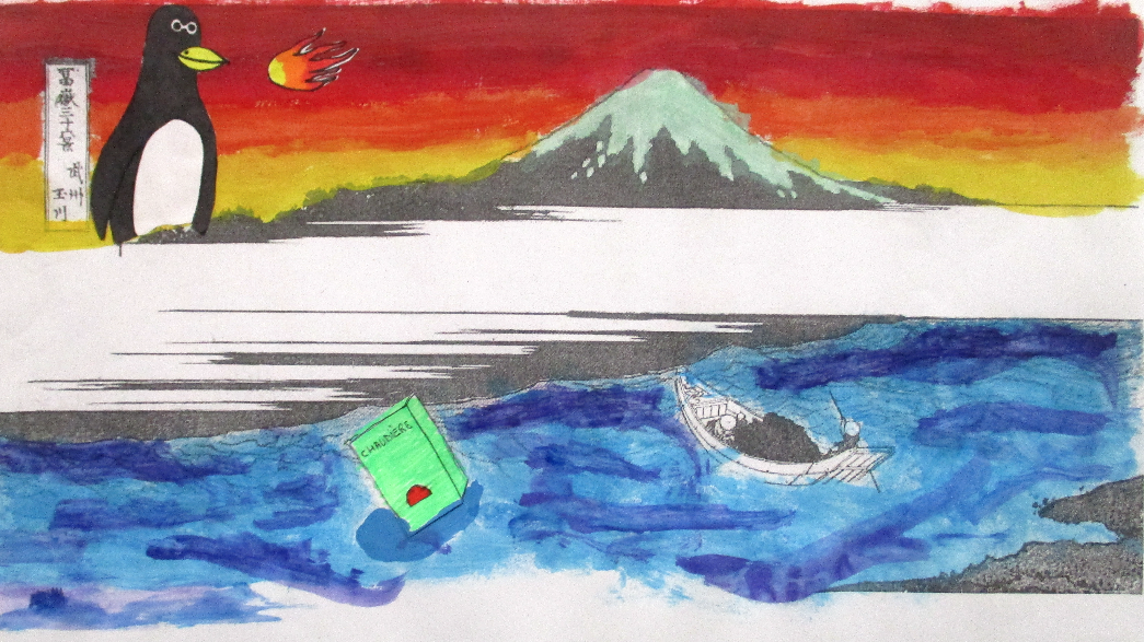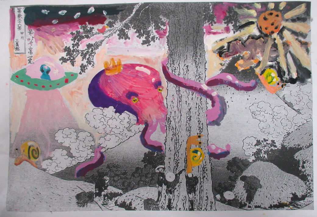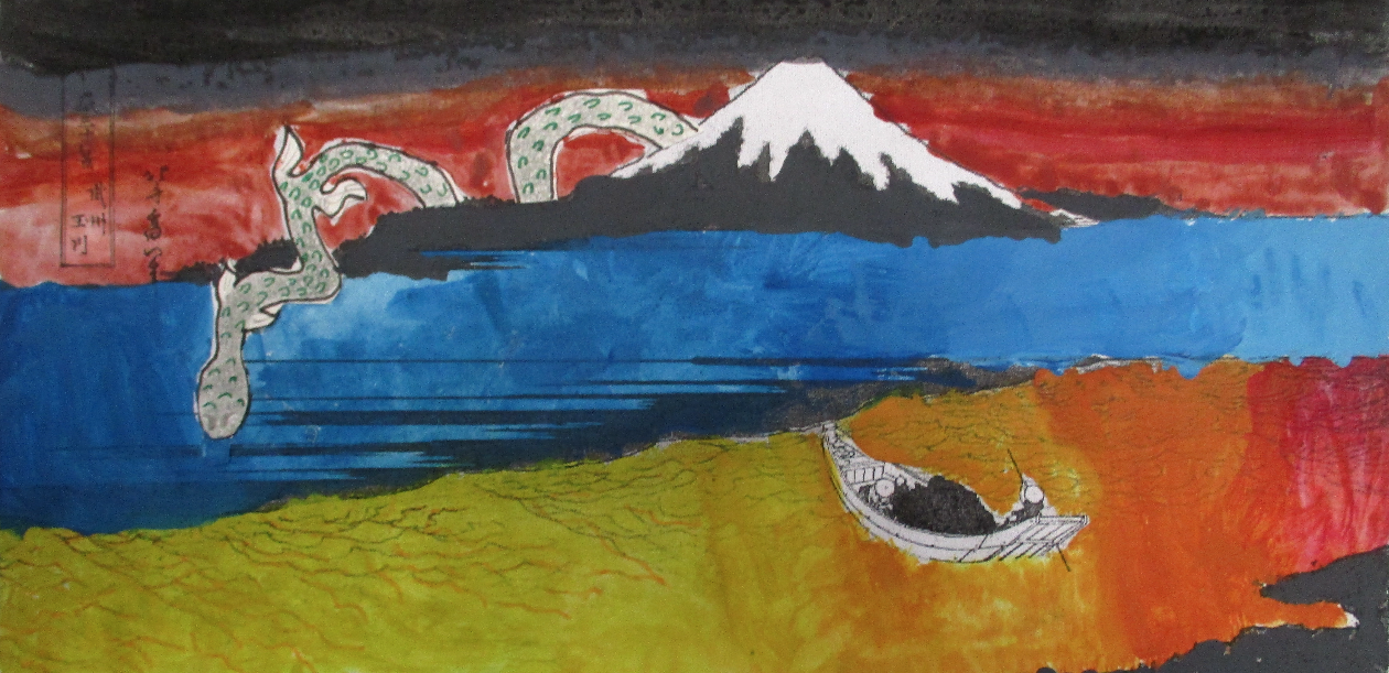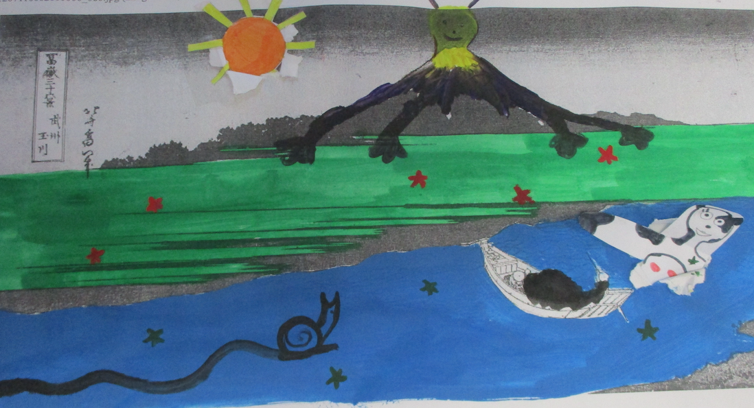 Les classes de 4D, 4S, 4M et 4E ont détourné , un des chef d’œuvre d’Hokusaï de la série du mont Fidji, dont " La grande vague".