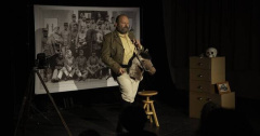 Histoire et amusement Régis Guigand est très l’aise dans la peau de ce photographe, rôle écrit, après tout, par et pour lui. C’est en prenant du plaisir sur scène qu’il parvient à nous transmettre son amusement, comme la fois où il se débat avec le fantôme par exemple, ou encore quand il perd sa chaussure, que le fantôme lui vole, et qu’il nous permet e nous plonger dans les méandres de la mémoire ; son jeu d’acteur est très naturel, exprimé par exemple par les hésitations laissées volontairement deci-delà du texte, permet au public de se sentir à l’aise et donne envie d’aller fouler les planches avec lui. Une pièce drôle, qui permet de se poser des questions sur notre histoire personnelle et de se perdre dans le dédale de la mémoire historique.