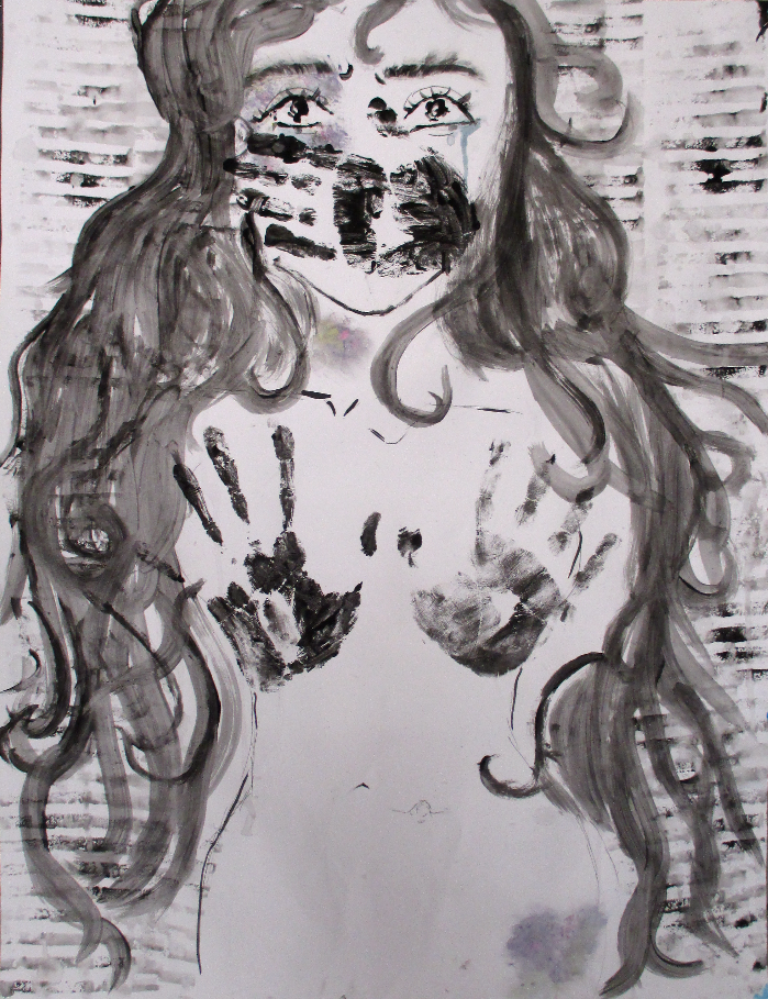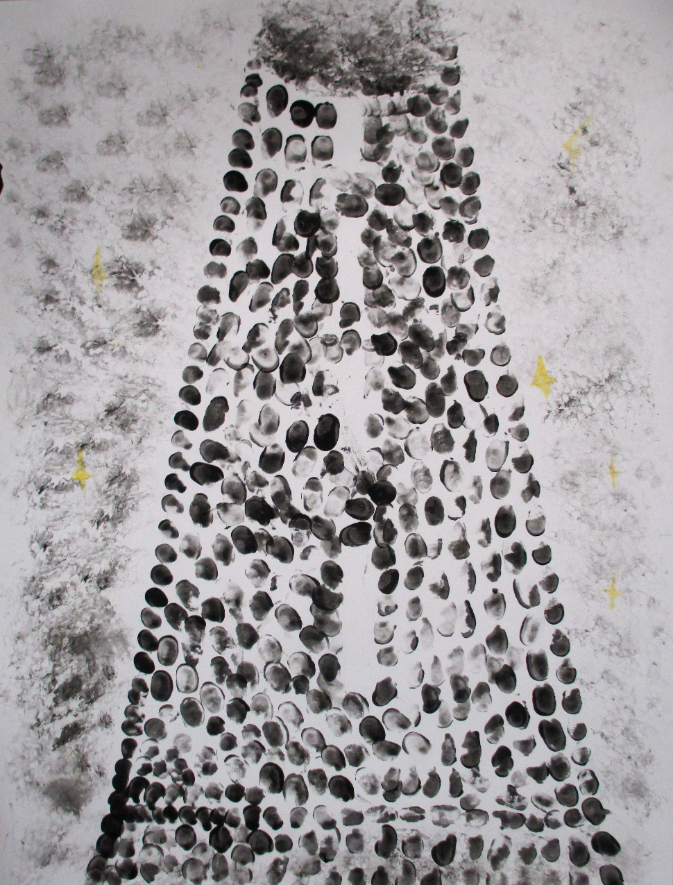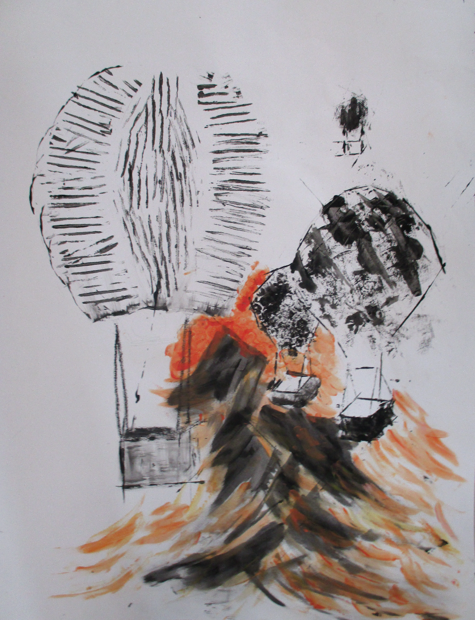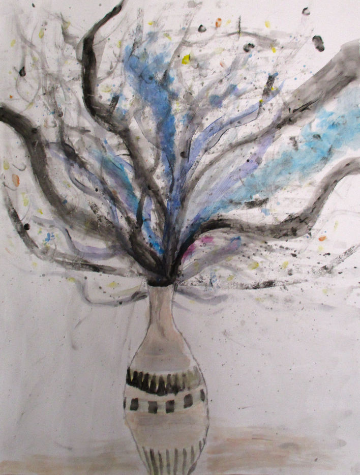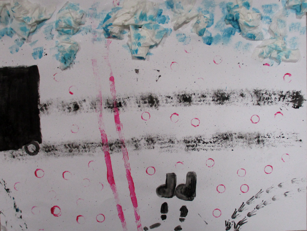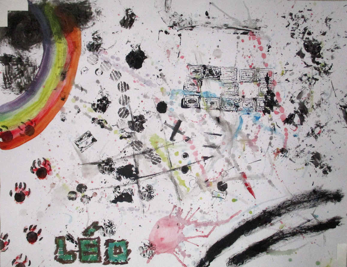Lors d’une réalisation en binôme, les élèves de 3 D, 3 F,et 3 A ont exploré les effets picturaux obtenus, en variant les outils et les gestes utilisées pour peindre leur projet.