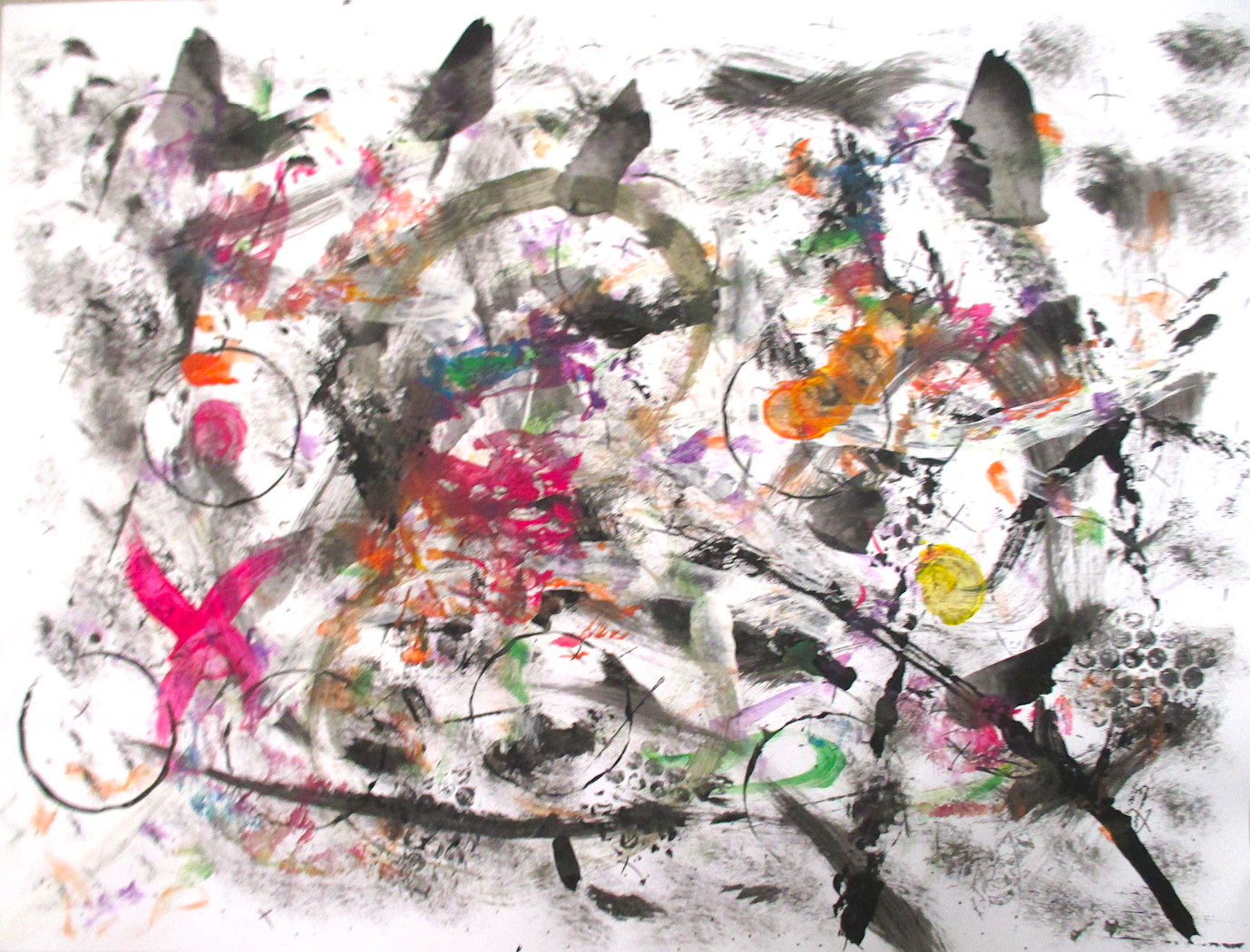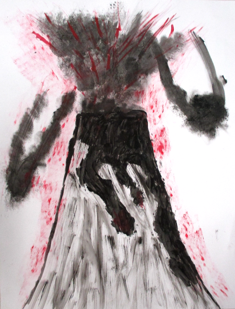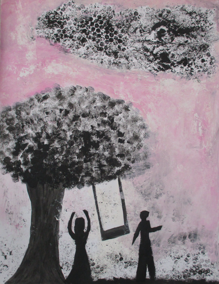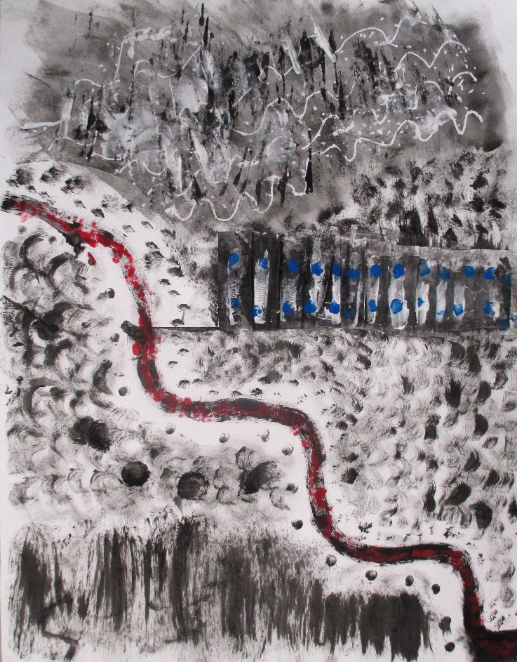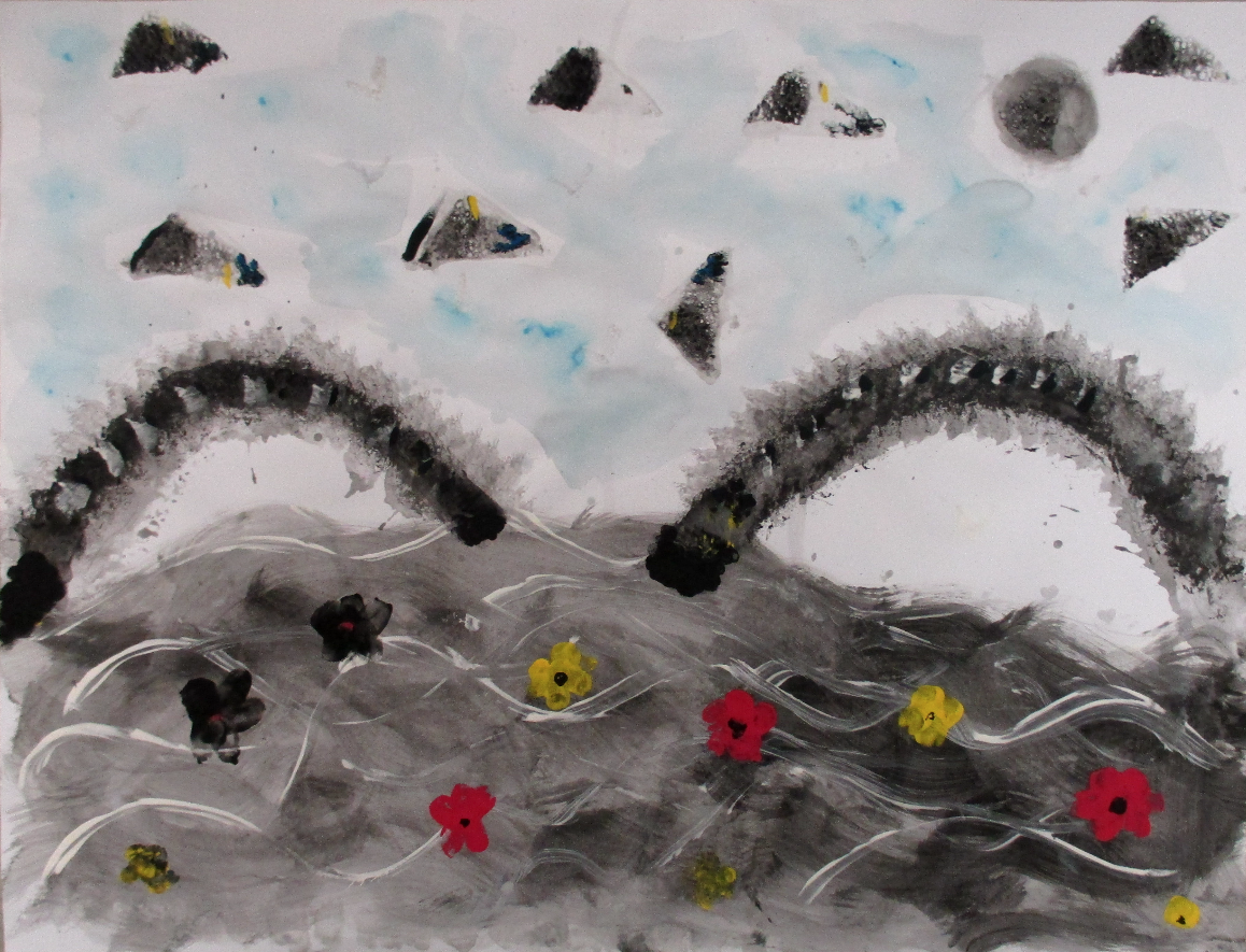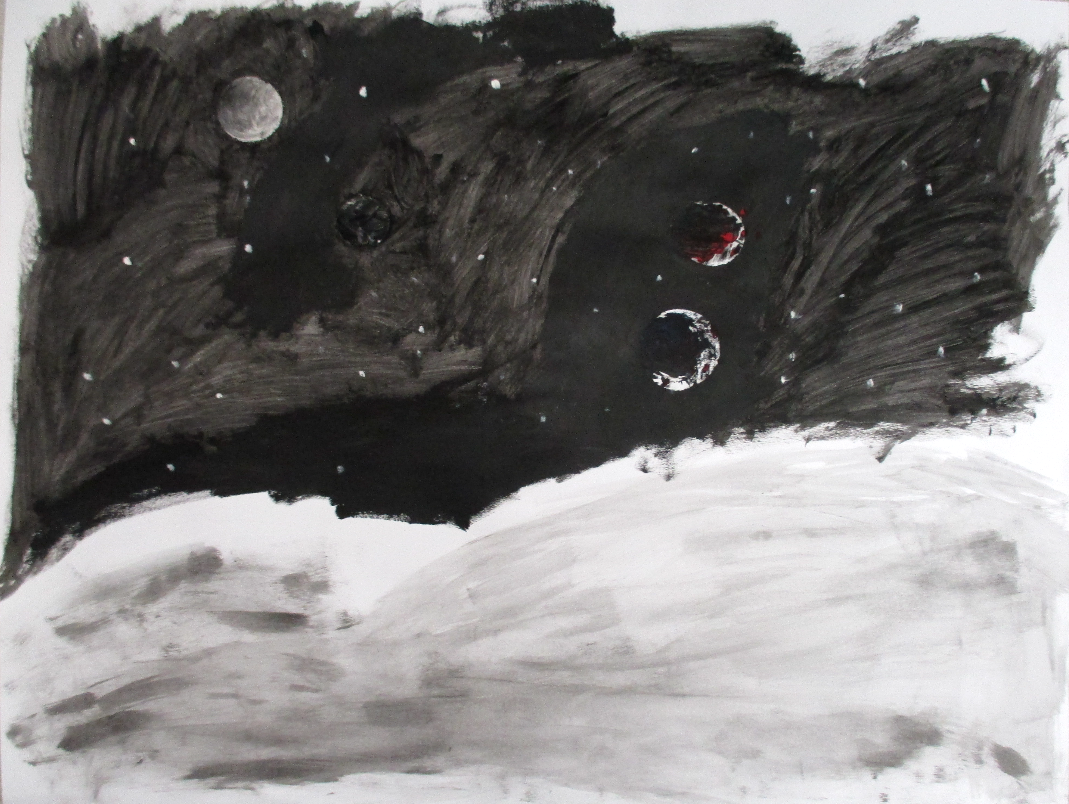 Lors d’une réalisation en binôme, les élèves de 3 D, 3 F,et 3 A ont exploré les effets picturaux obtenus, en variant les outils et les gestes utilisées pour peindre leur projet.