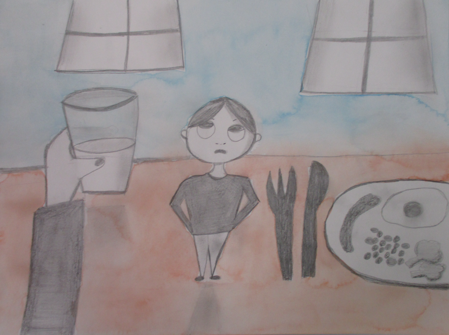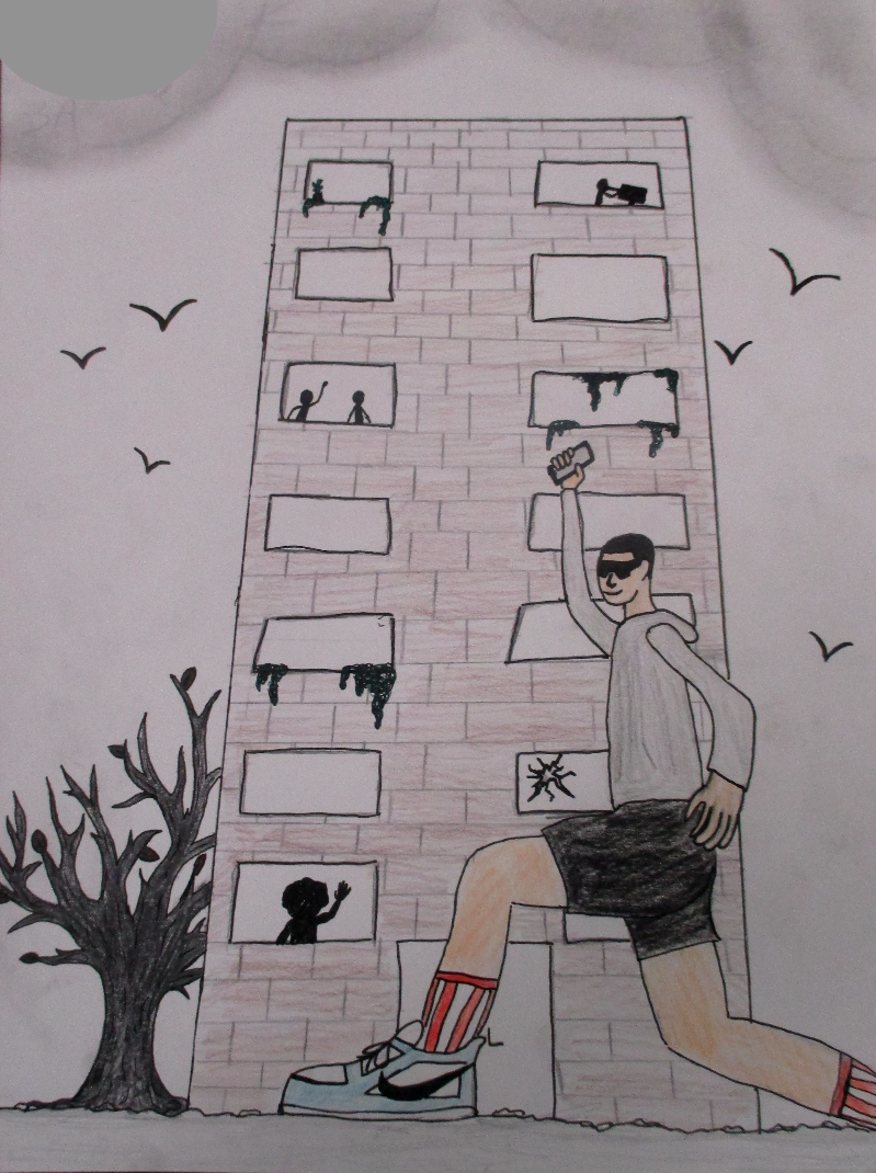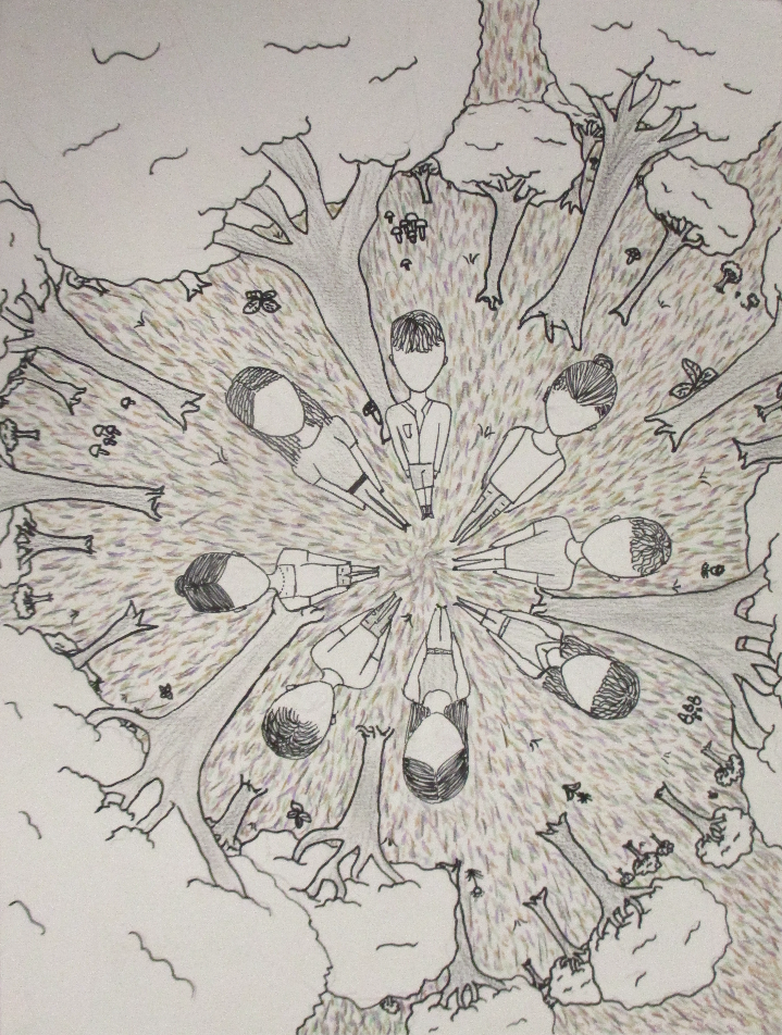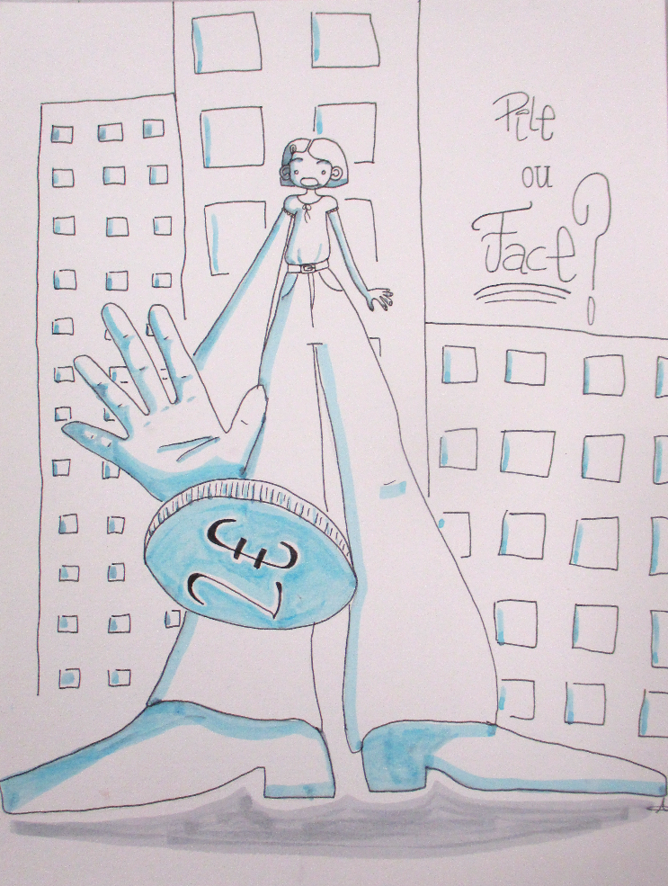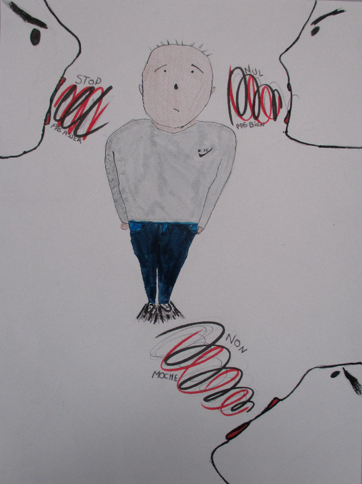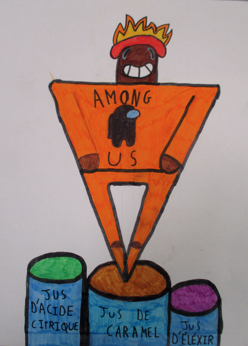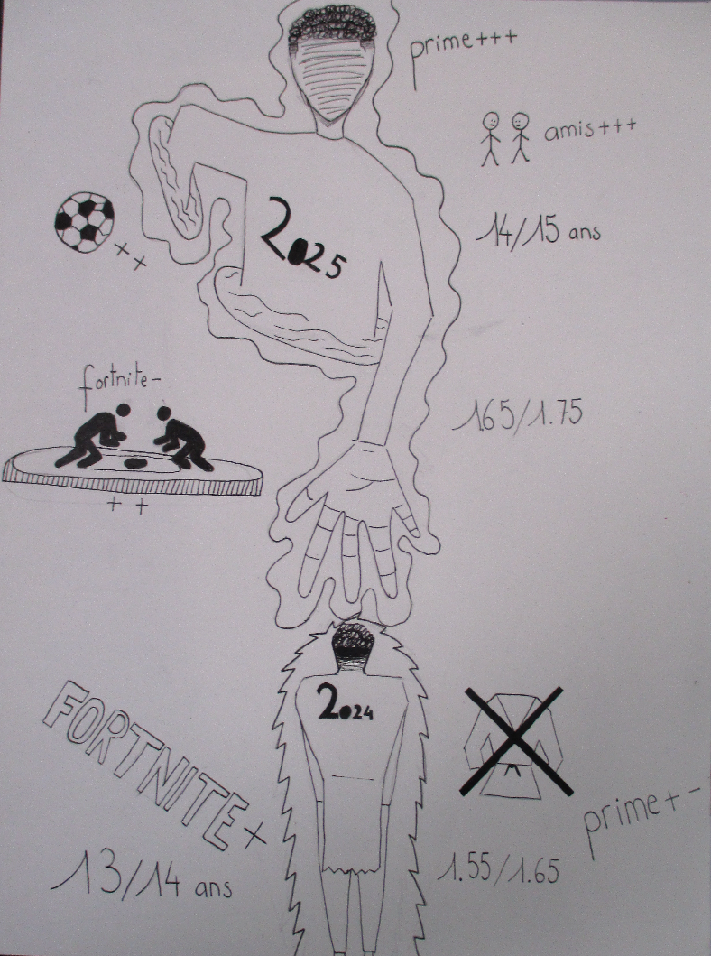 Les élèves de 3M, 3A, 3C, 3E, 3F, 3D ont exploité l’un de ces deux différents angles de vue pour représenter graphiquement le corps humain dans un contexte narratif en lien avec son choix.