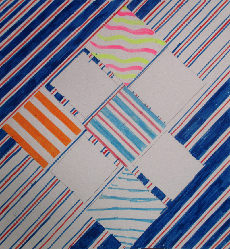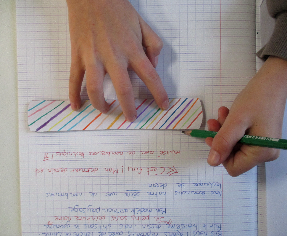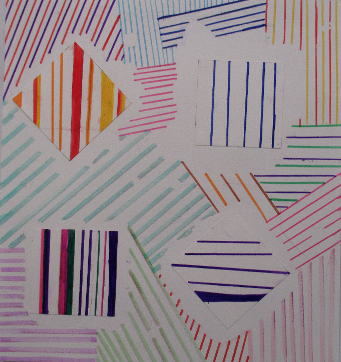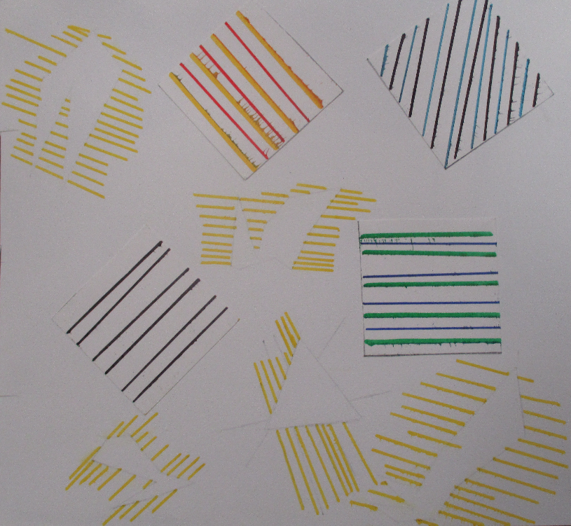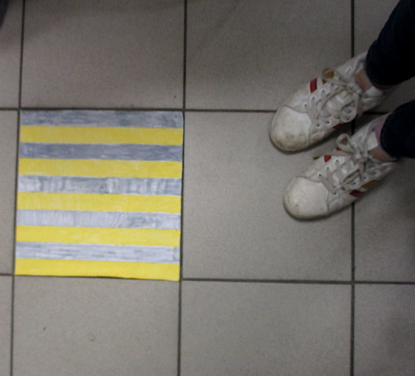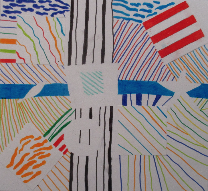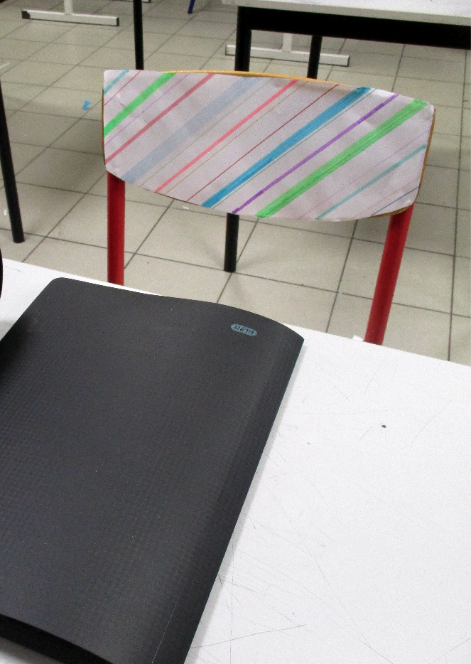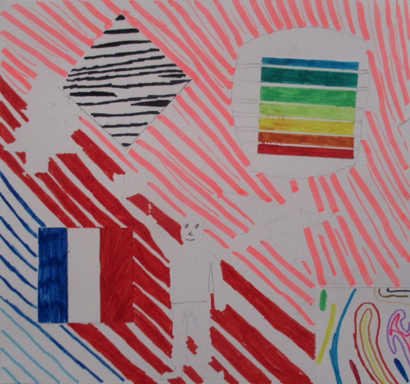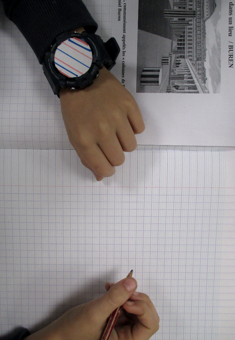Les 6D, 6S, 6F, 6E, après avoir joué avec ce motif sur un format carré, ont réalisé dans la salle des réalisations in situ* en binôme.