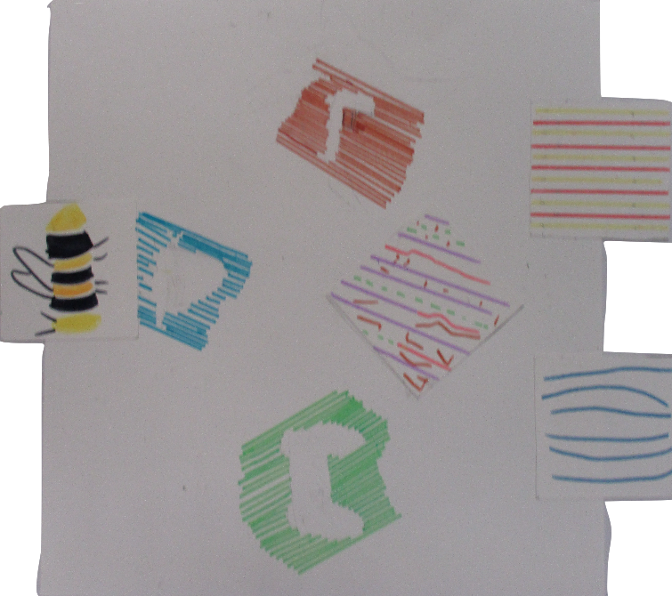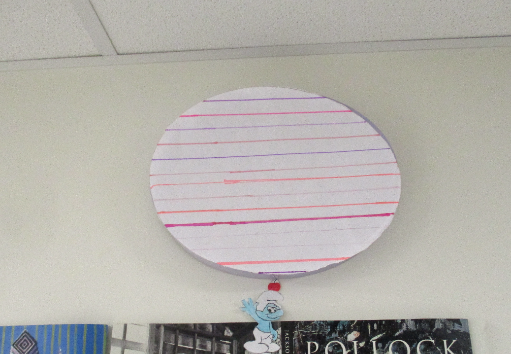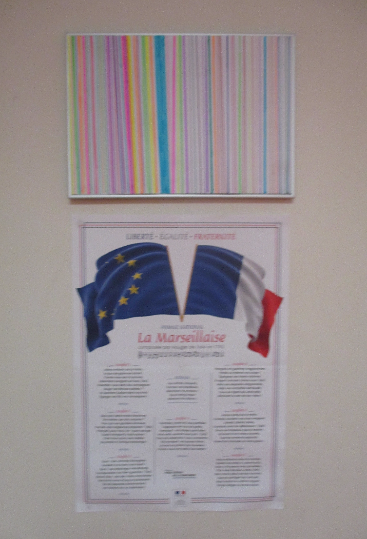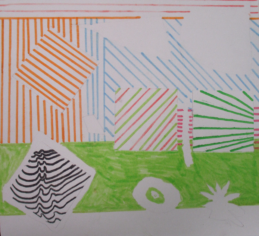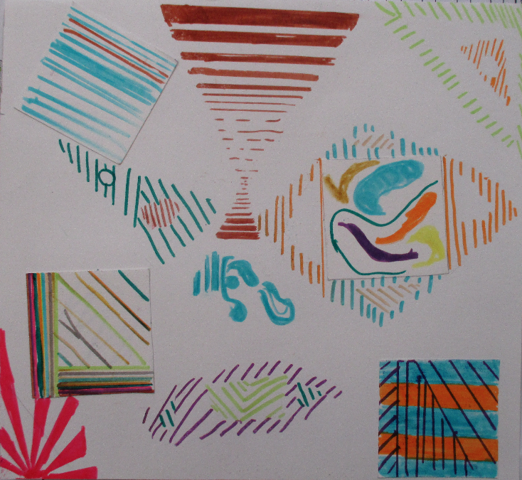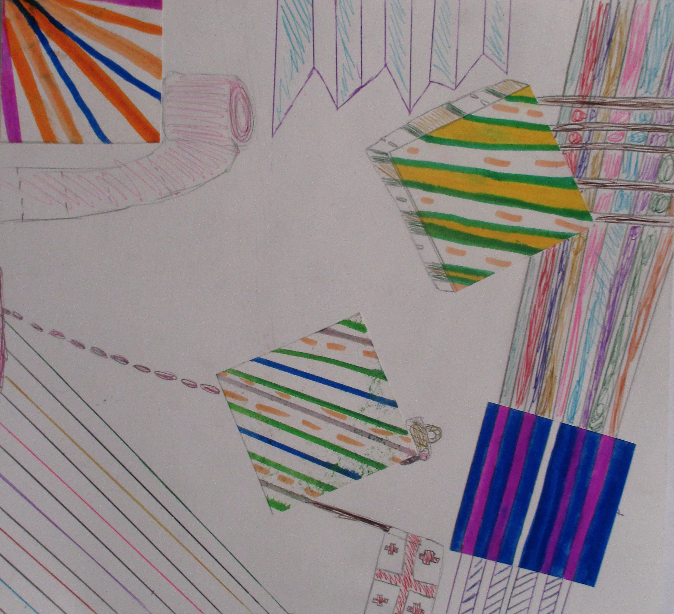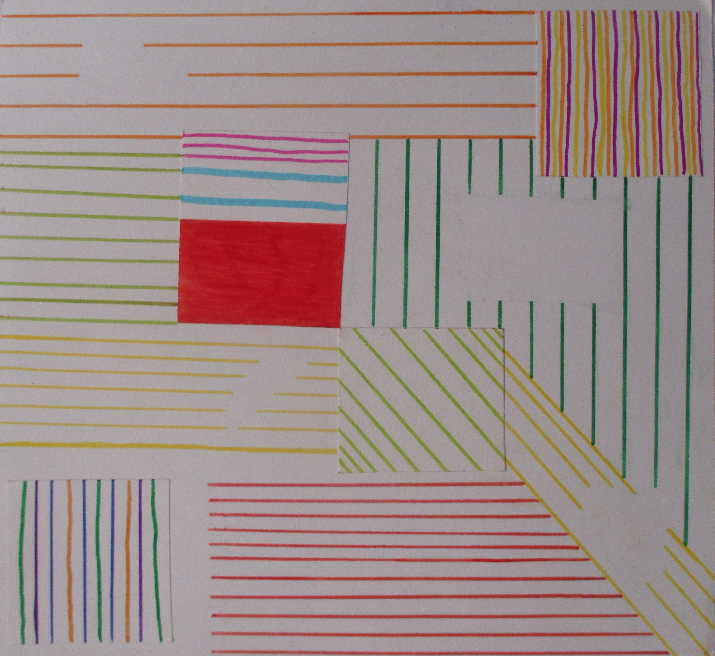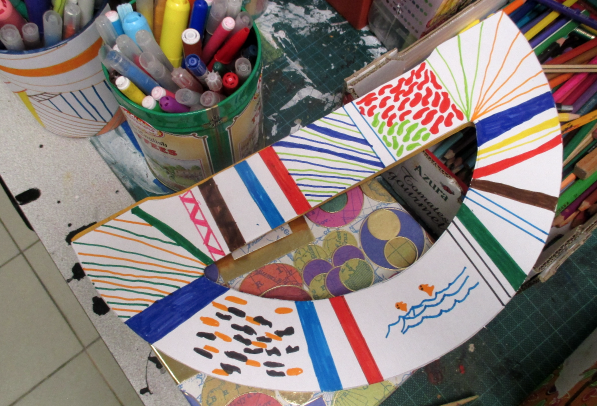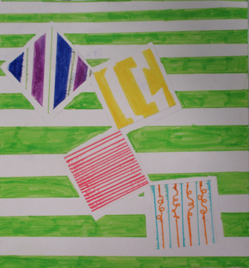 Les 6D, 6S, 6F, 6E, après avoir joué avec ce motif sur un format carré, ont réalisé dans la salle des réalisations in situ* en binôme.