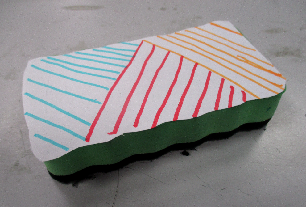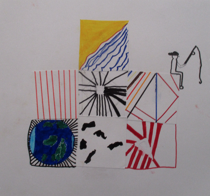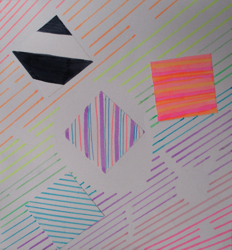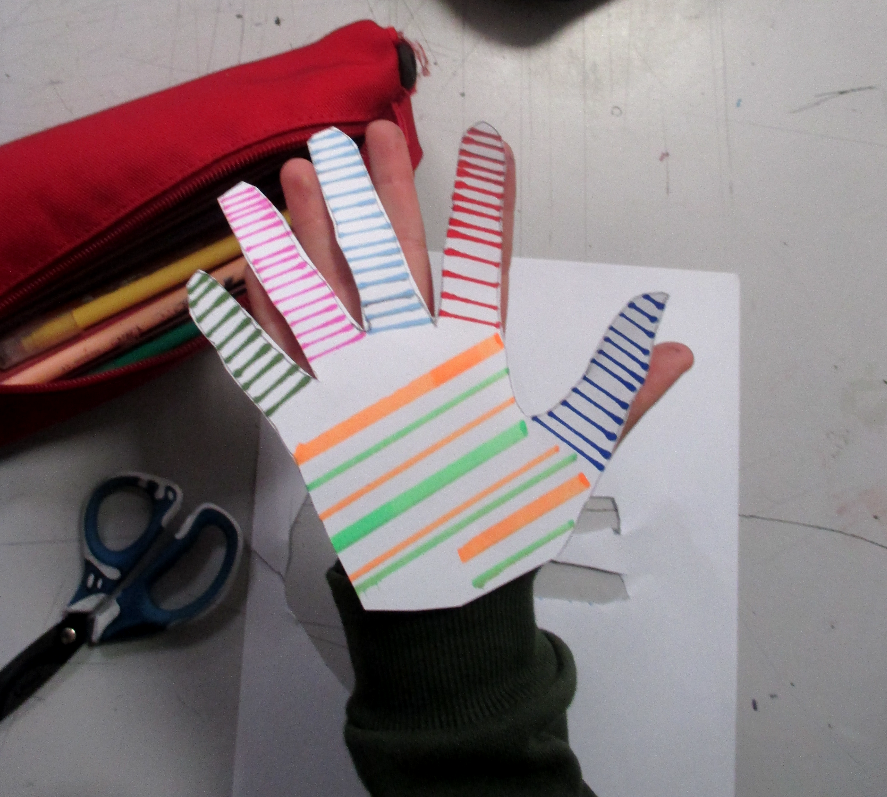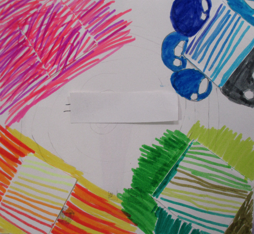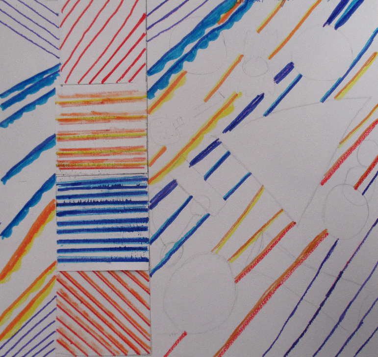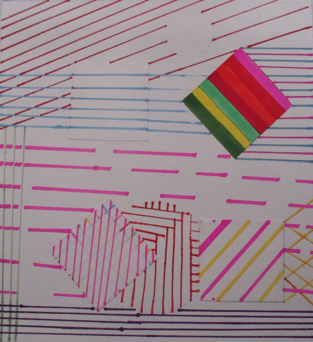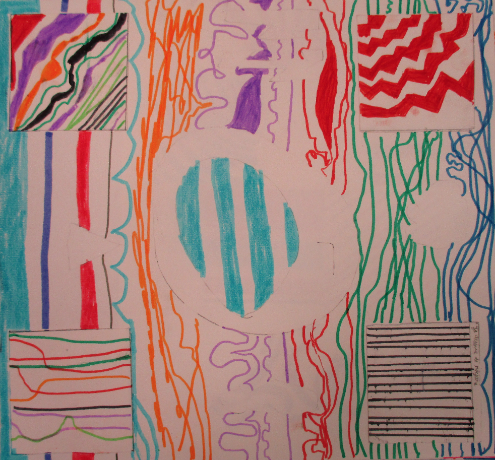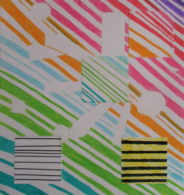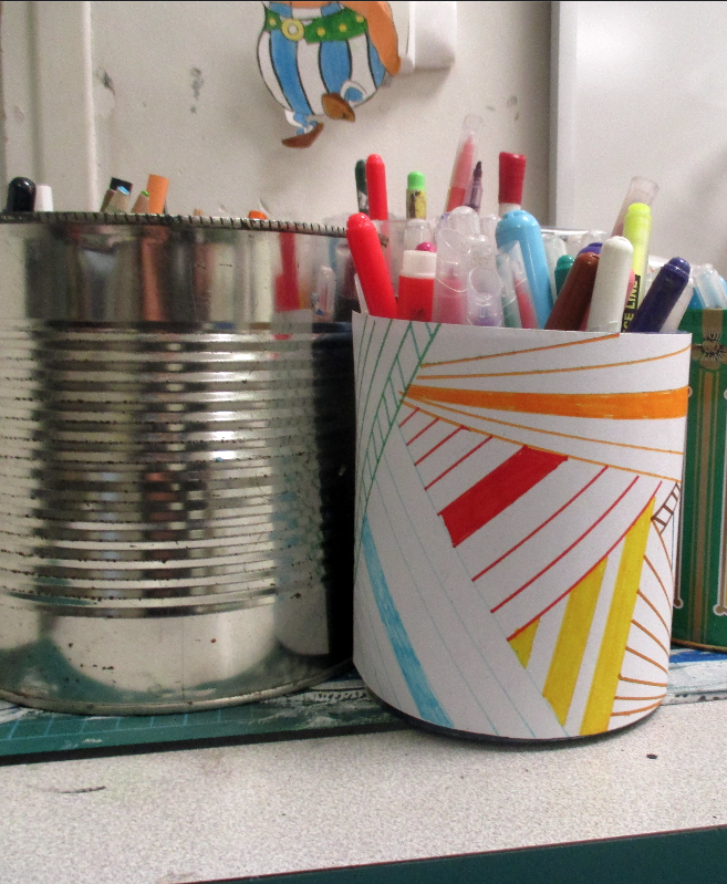 Les 6D, 6S, 6F, 6E, après avoir joué avec ce motif sur un format carré, ont réalisé dans la salle des réalisations in situ* en binôme.