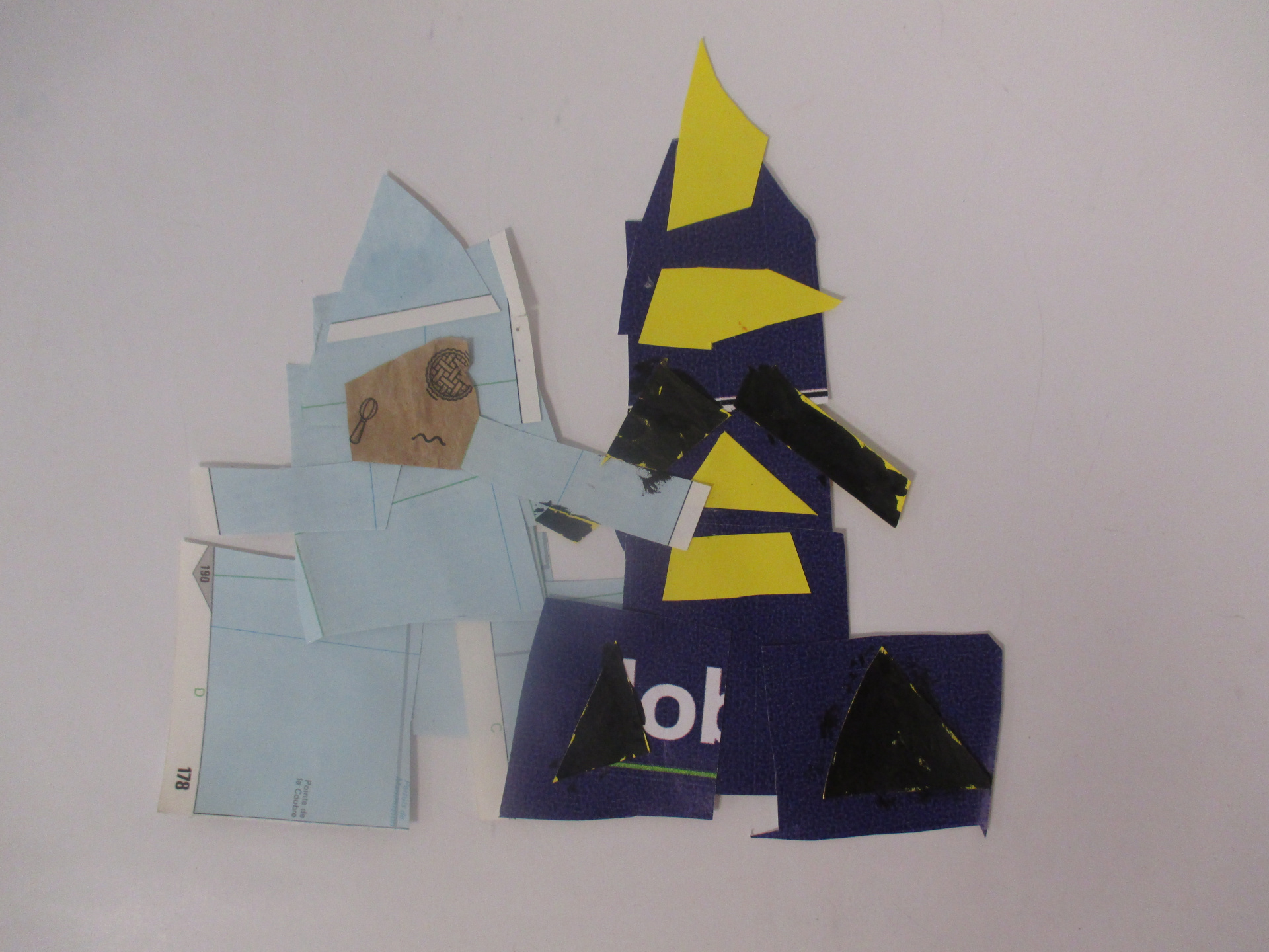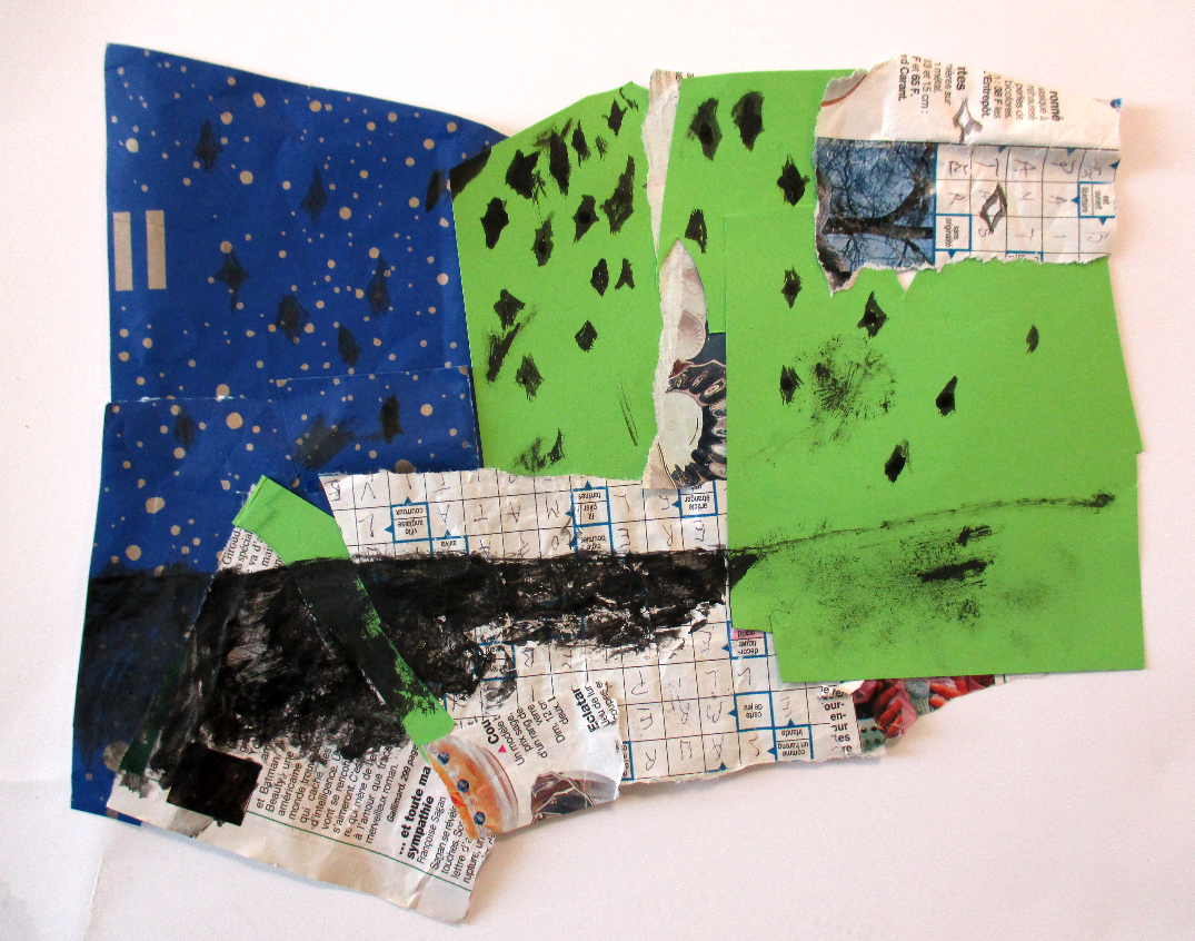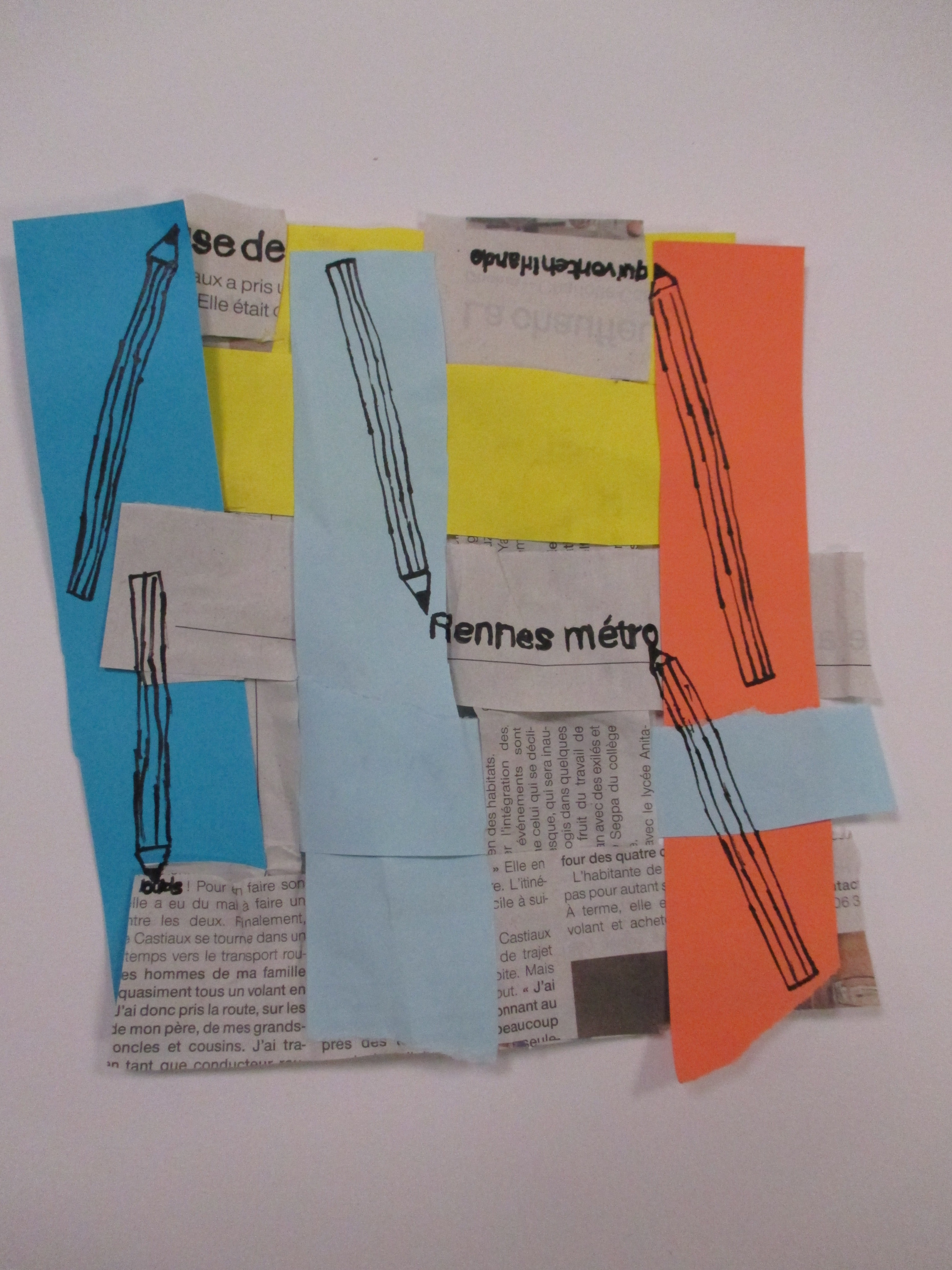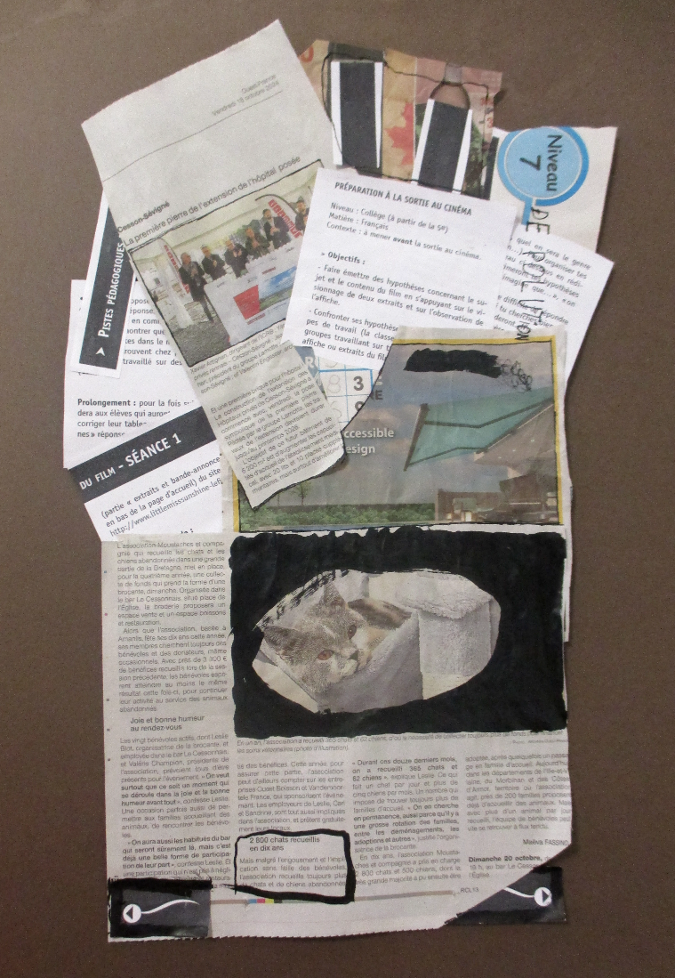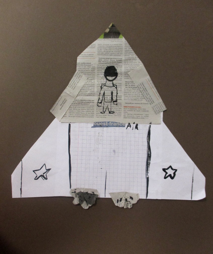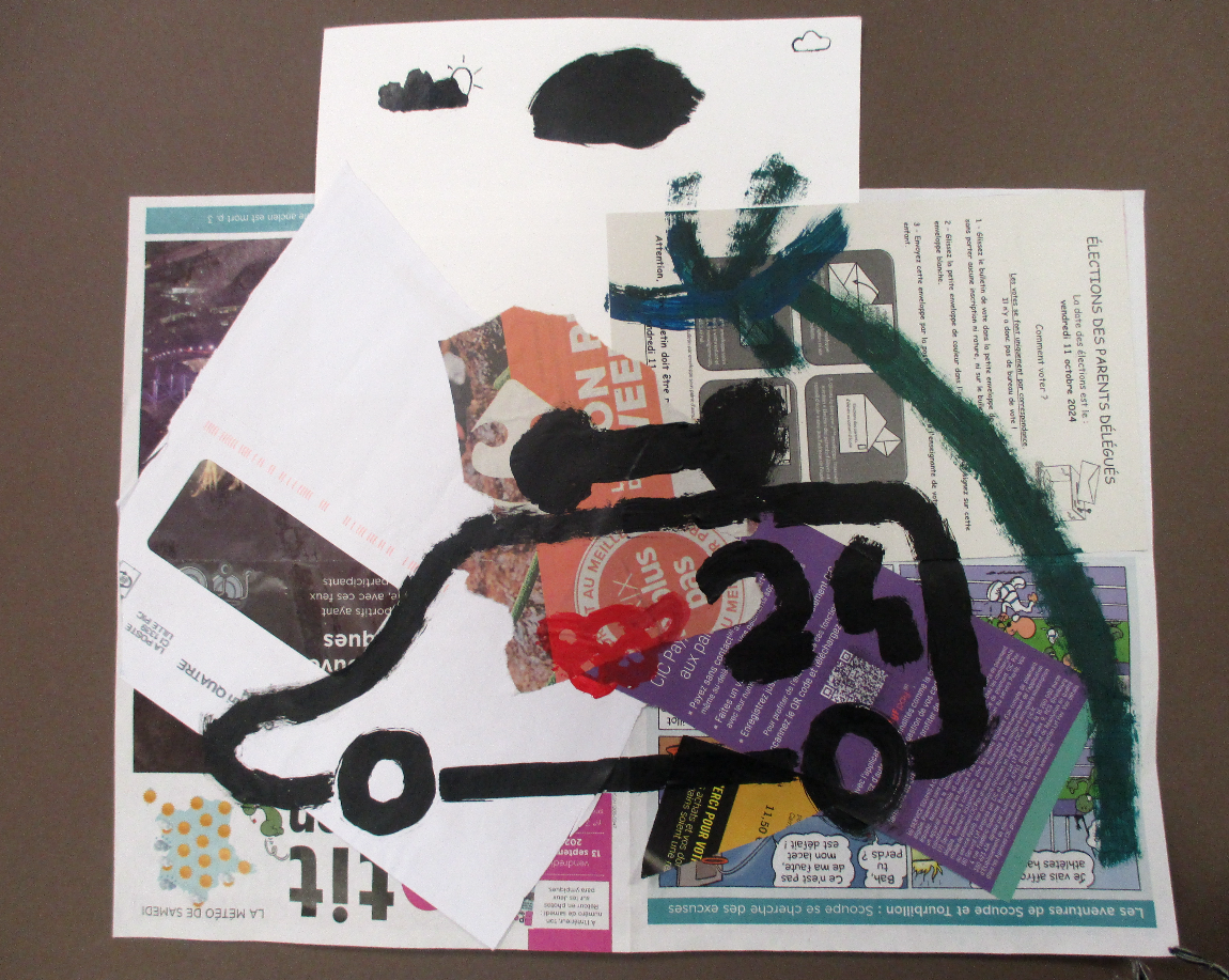 Les élèves de 6E, 6C, 6S, 6F, 6D, 6A ont conçu un support en assemblant des morceaux de papiers de récupération divers.