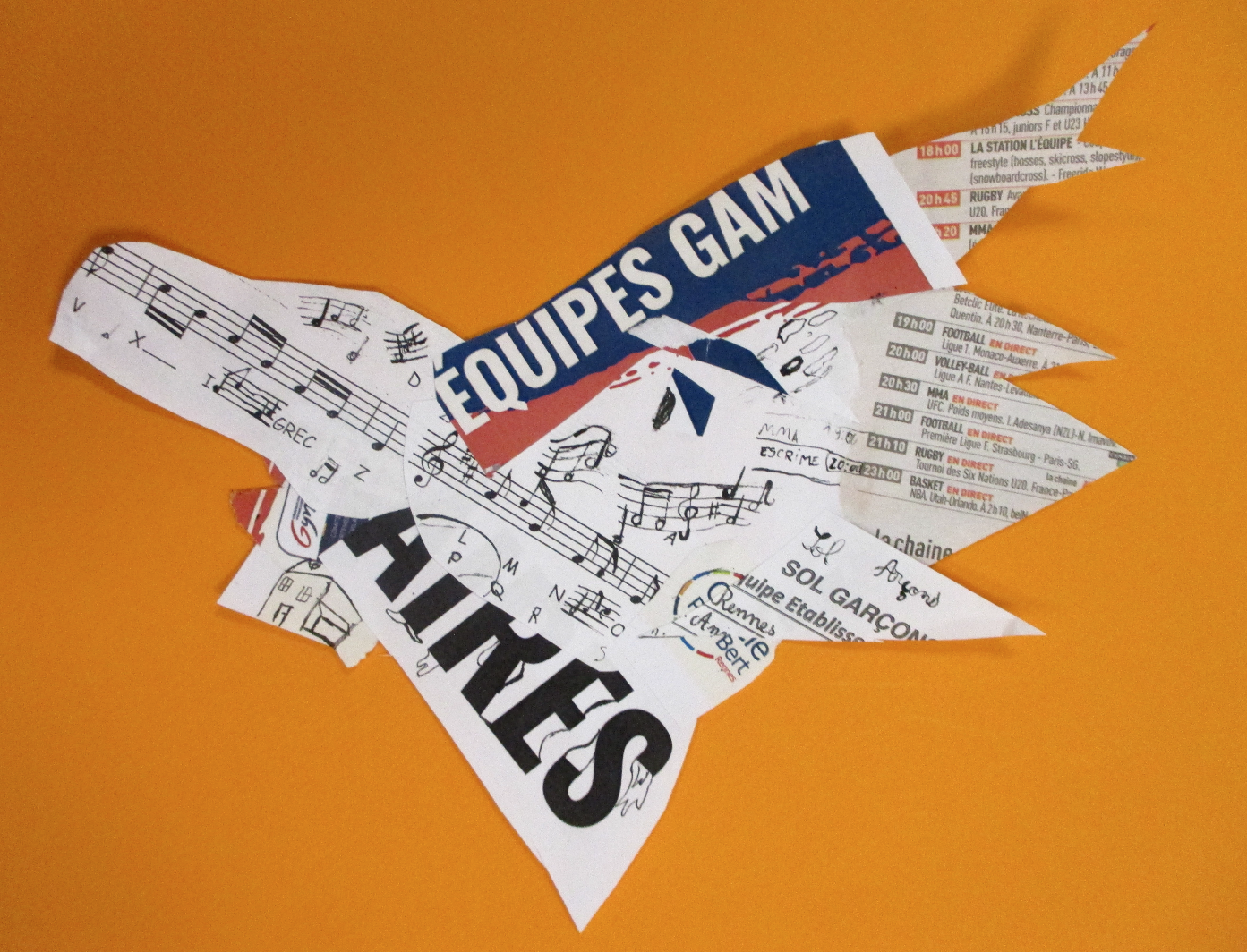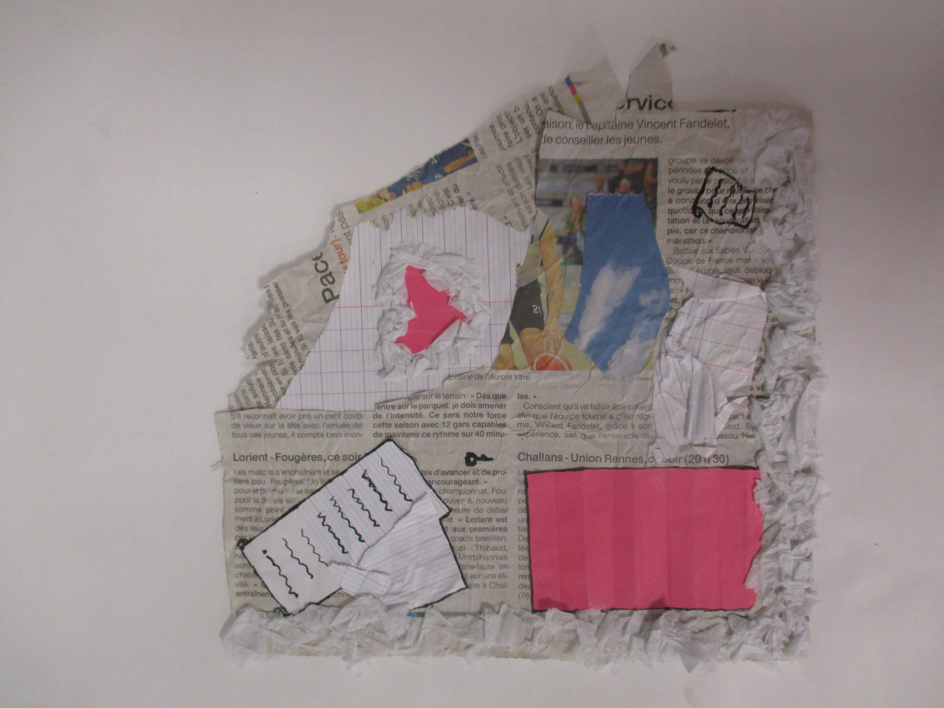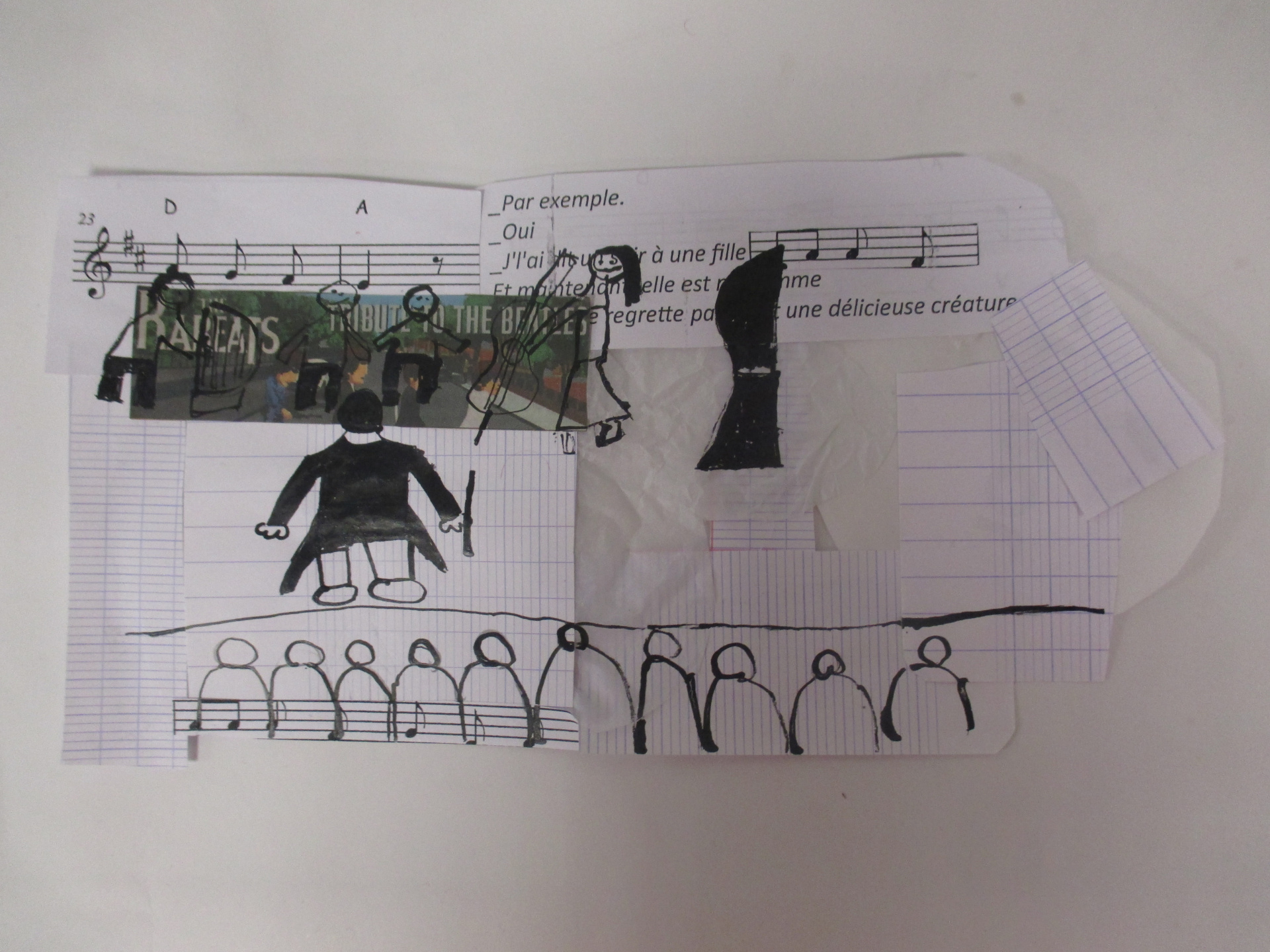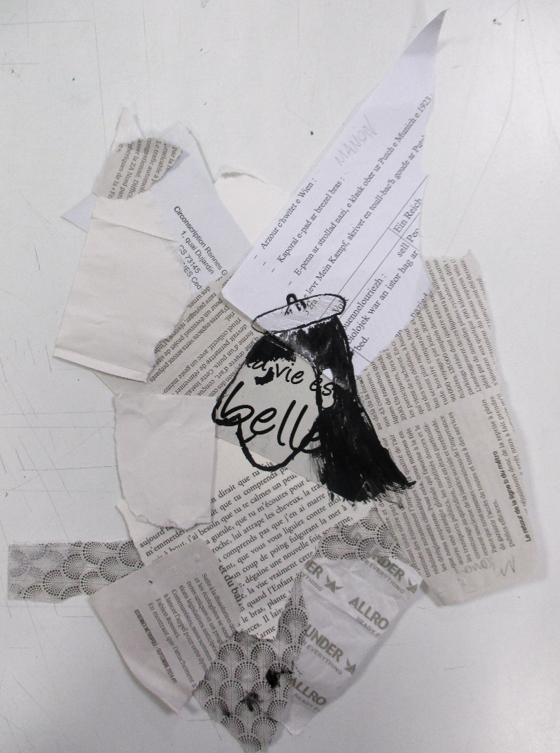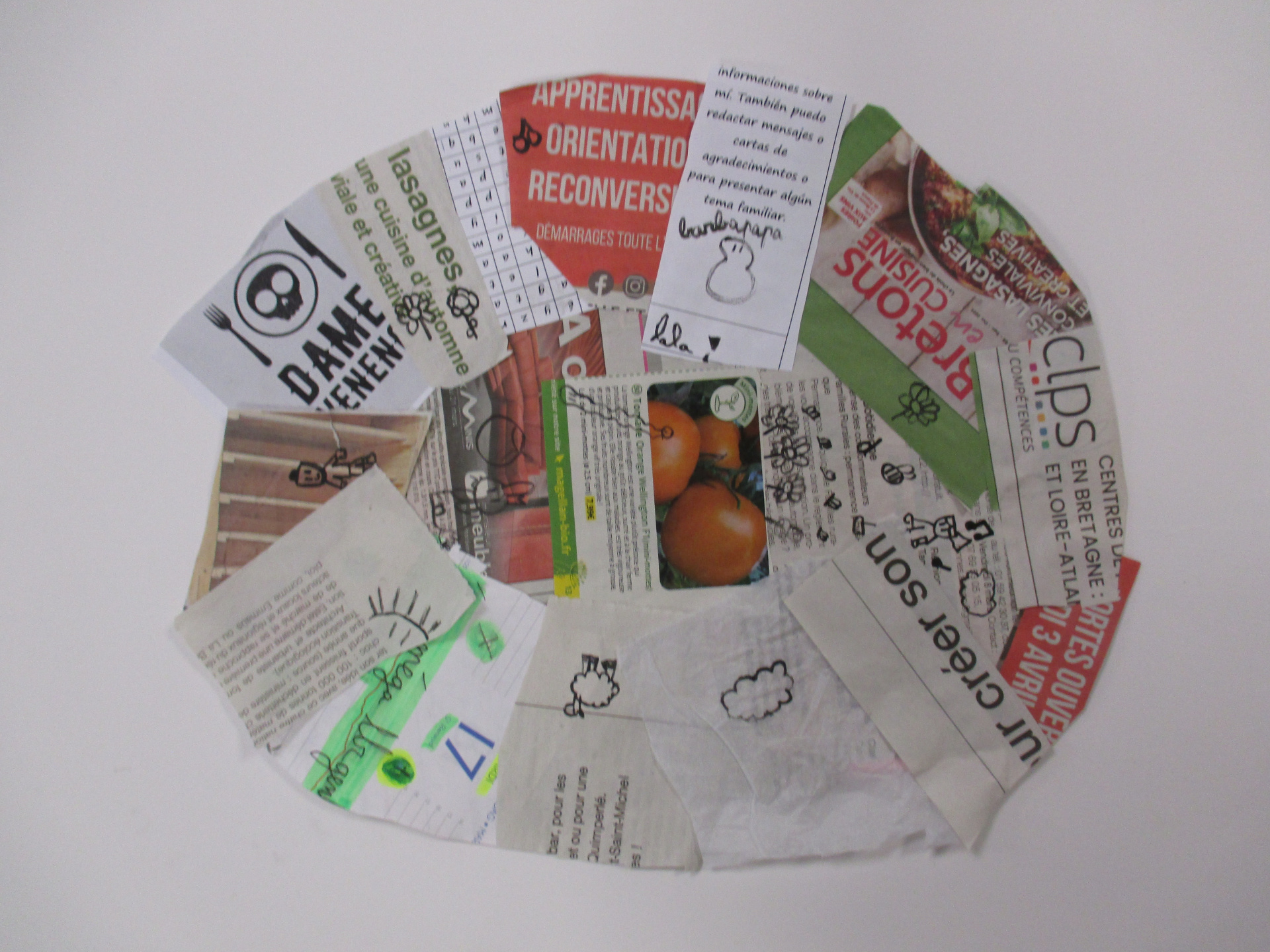 Les élèves de 6E, 6C, 6S, 6F, 6D, 6A ont conçu un support en assemblant des morceaux de papiers de récupération divers.