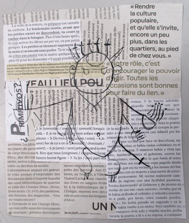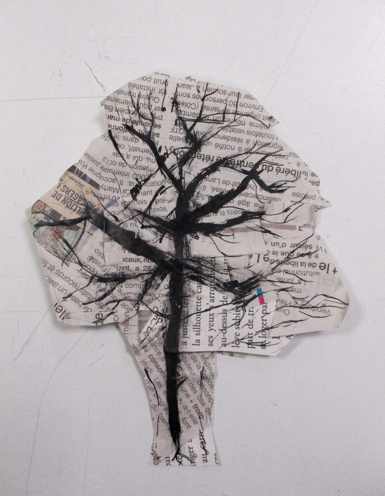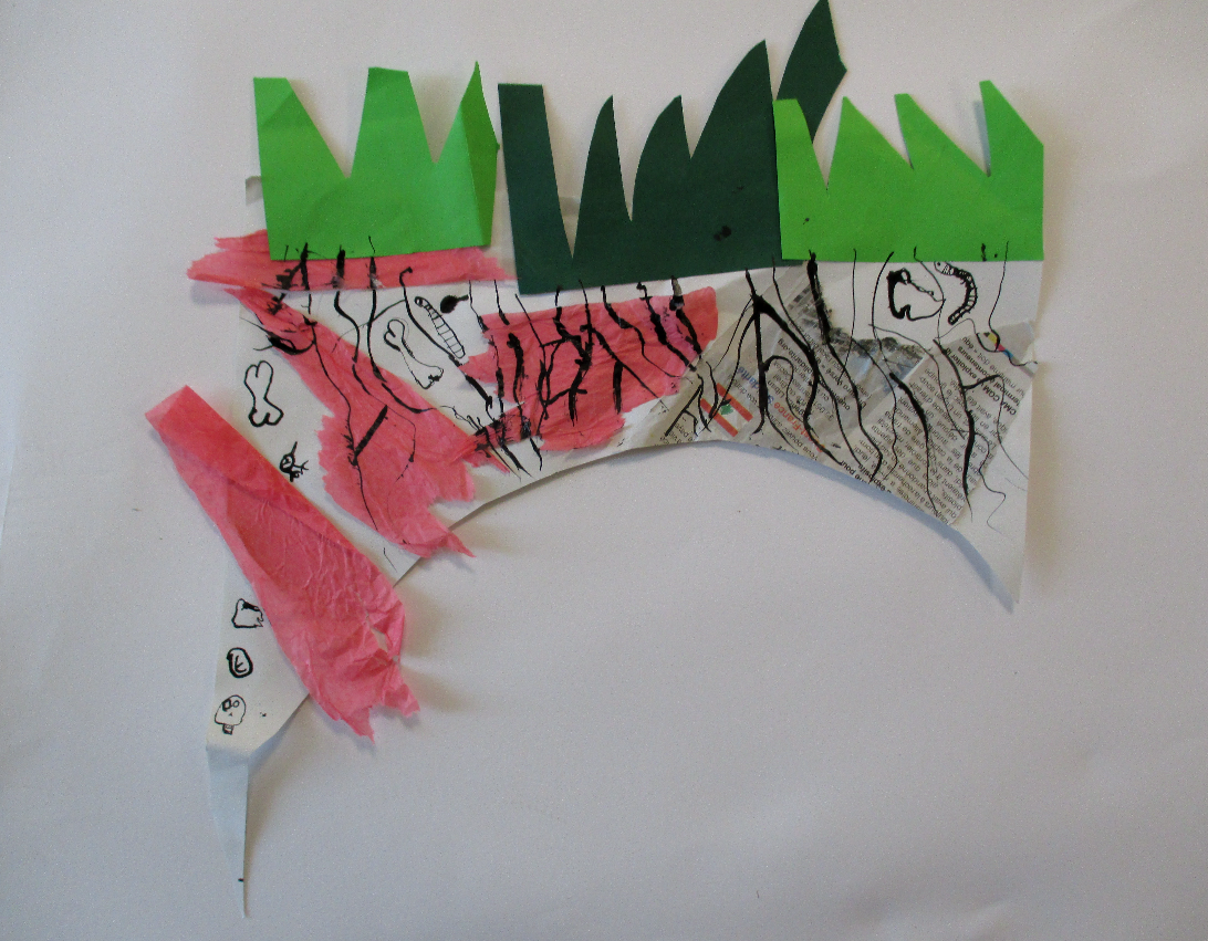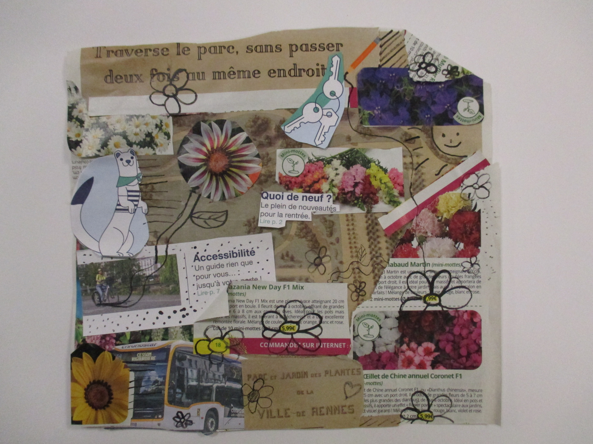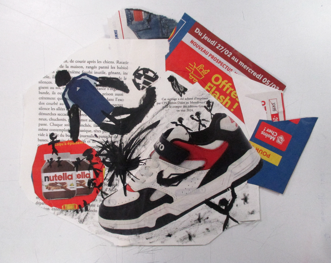Les élèves de 6E, 6C, 6S, 6F, 6D, 6A ont conçu un support en assemblant des morceaux de papiers de récupération divers.