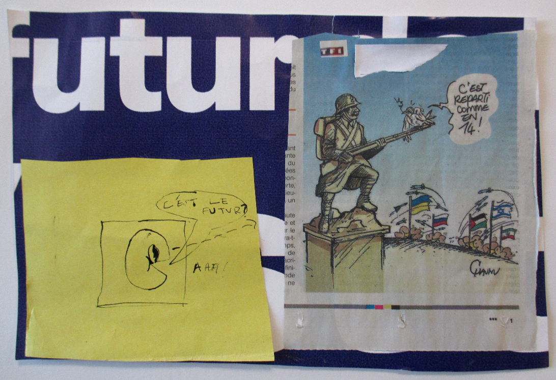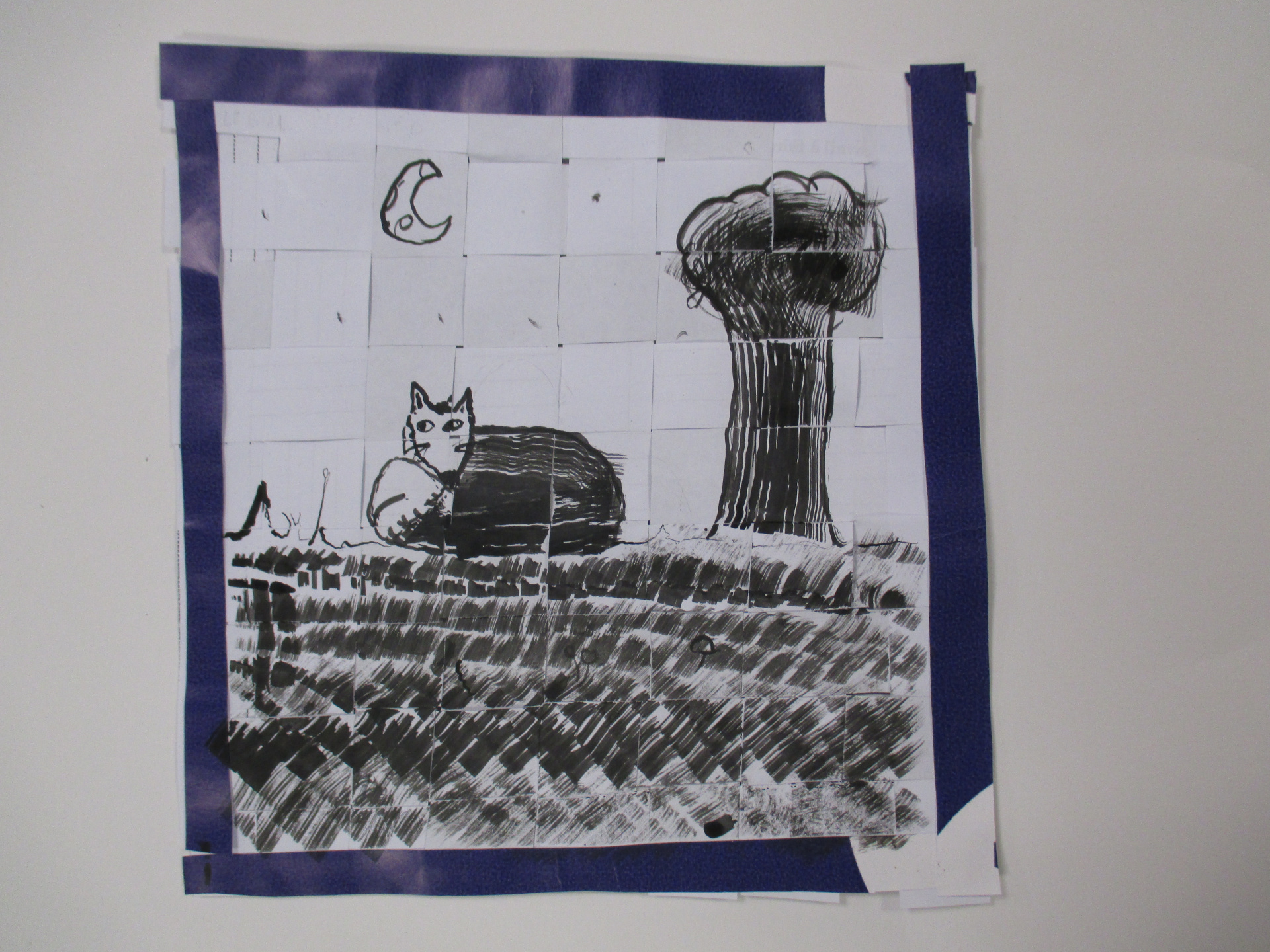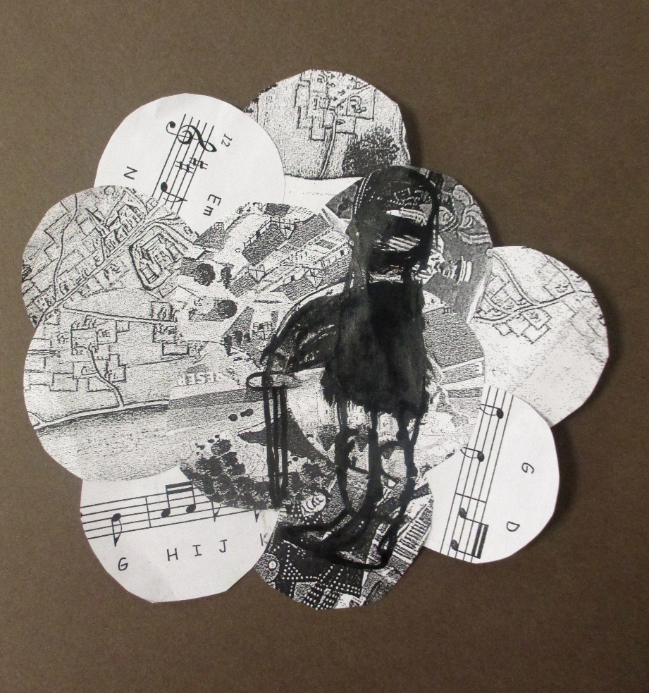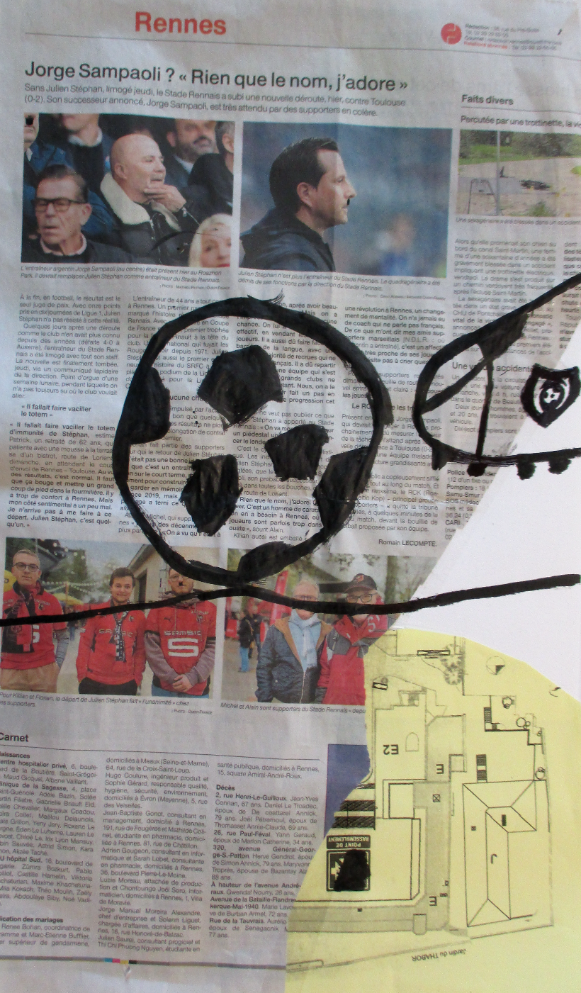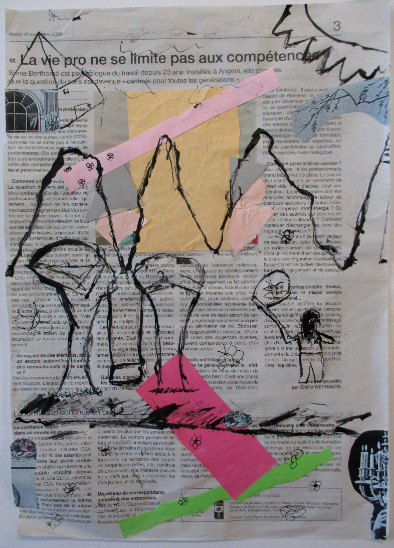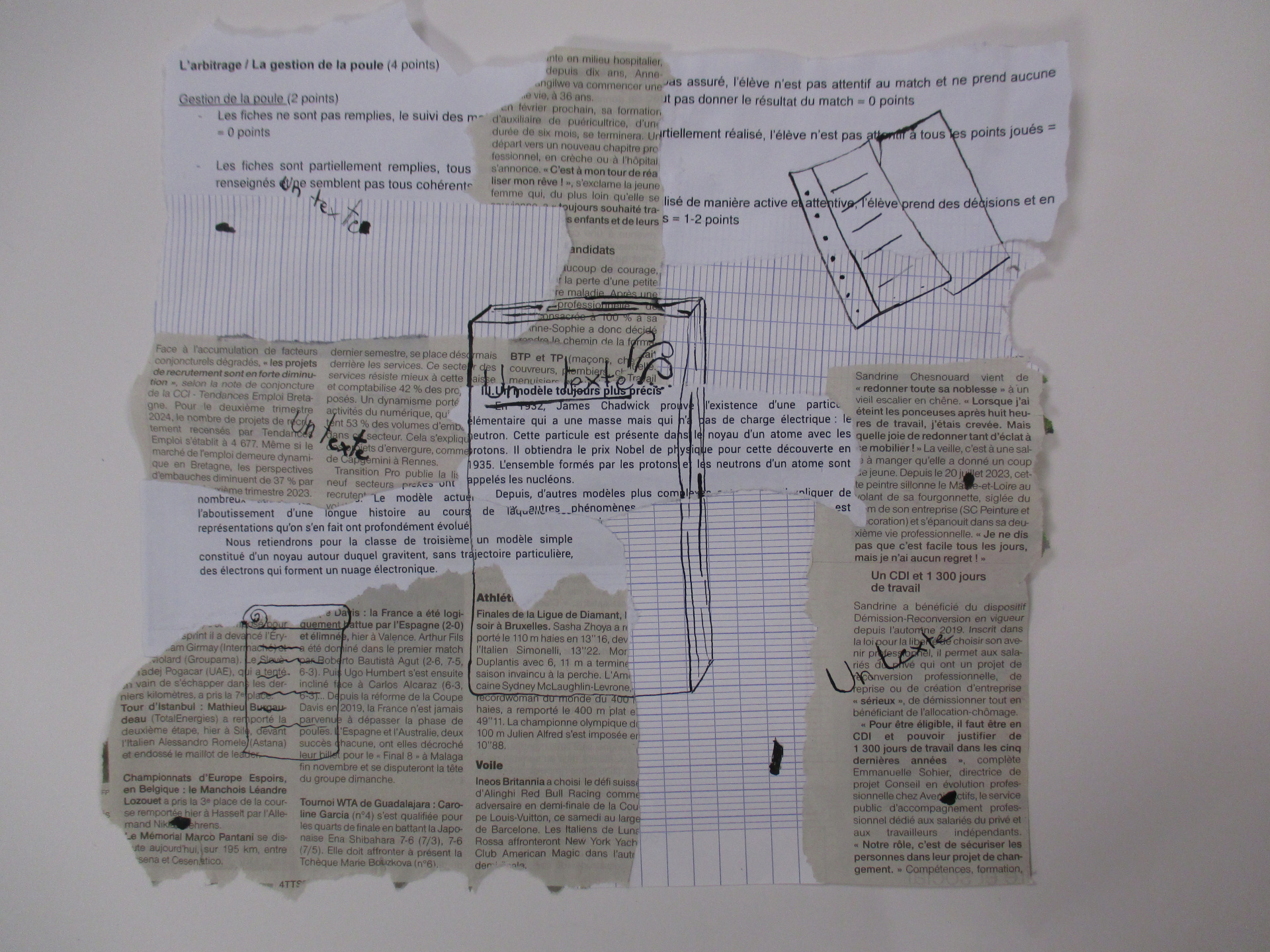 Les élèves de 6E, 6C, 6S, 6F, 6D, 6A ont conçu un support en assemblant des morceaux de papiers de récupération divers.