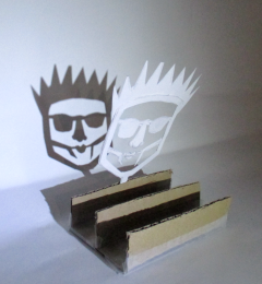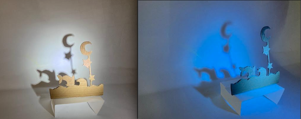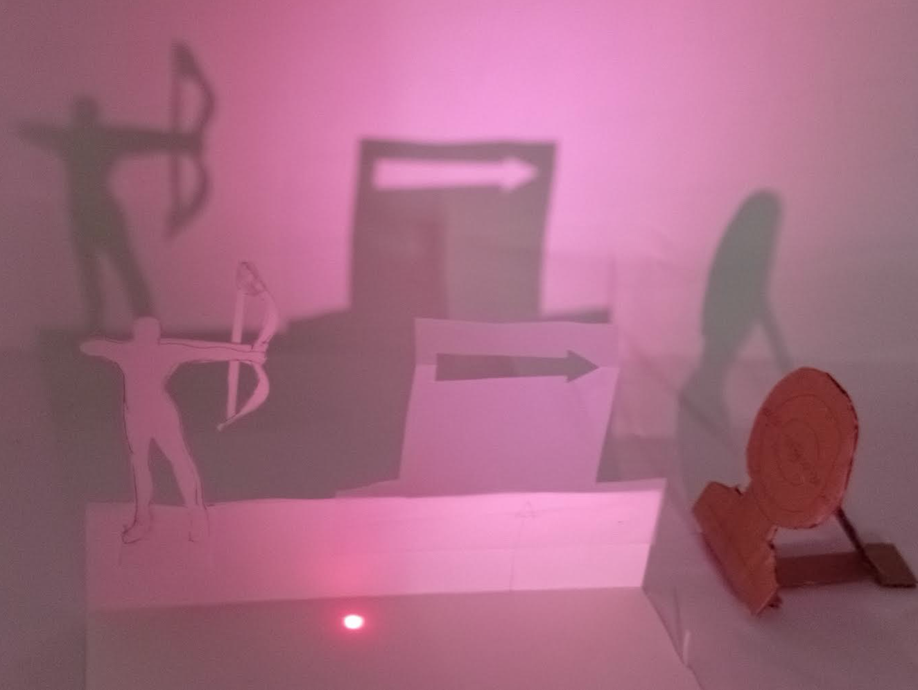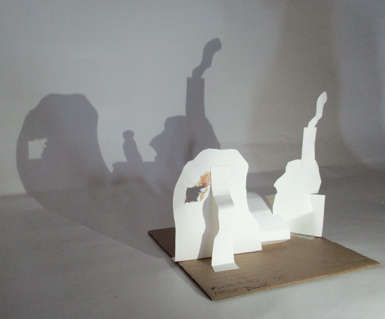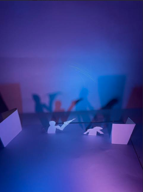 Les élèves de troisième ( E,A,F,D) ont réalisé, lors d’une recherche en binôme, des volumes jouant d’éclairages divers et d’ombres portées.