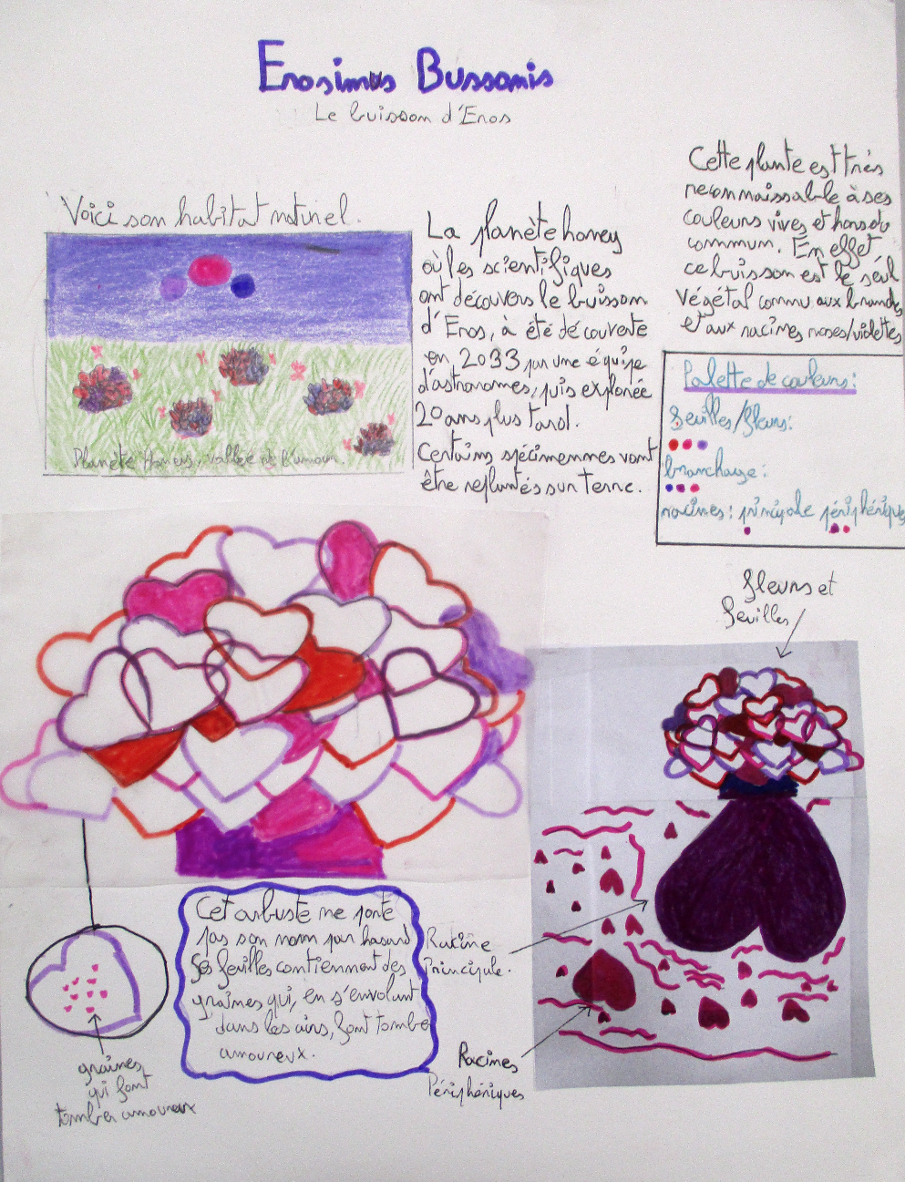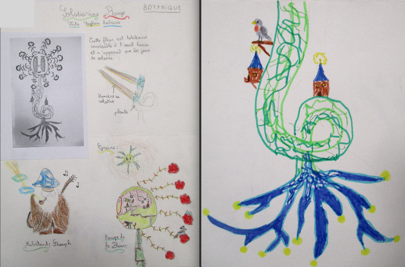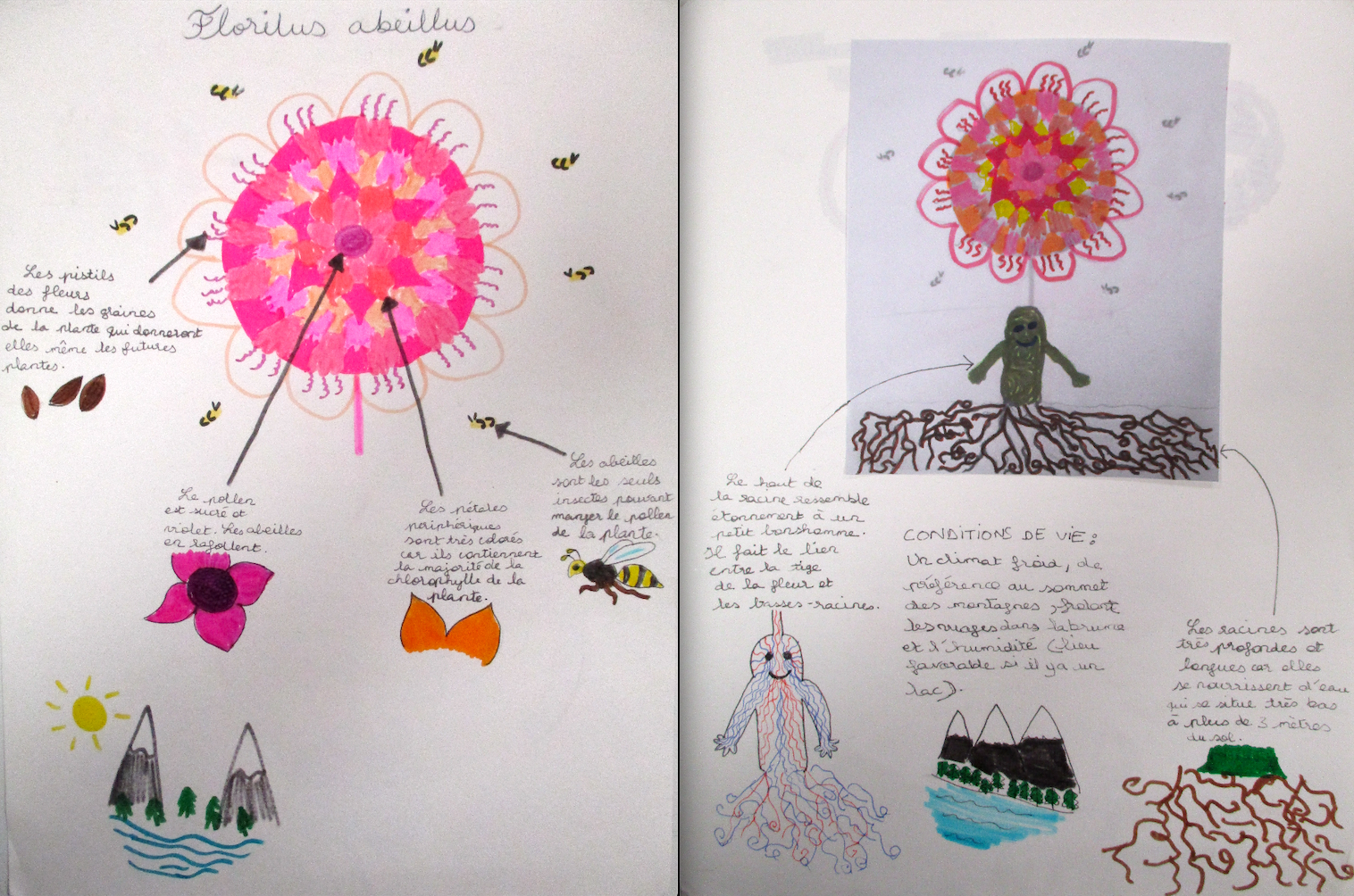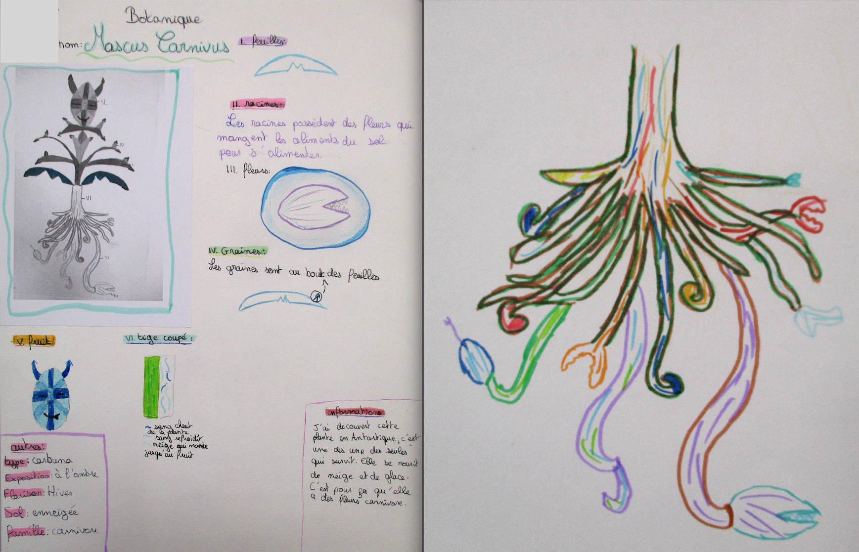 Les 4E, 4M, 4D ont découvert d’étranges plantes issues d’hybridation entre deux dessins puis les 4E et 4M ont poursuivi leurs découvertes « scientifiques » en réalisant une planche botanique et photographié, en binôme, leurs réalisations en relief mise en scène dans l’espace du collège. La flore du collège est vraiment surprenante…