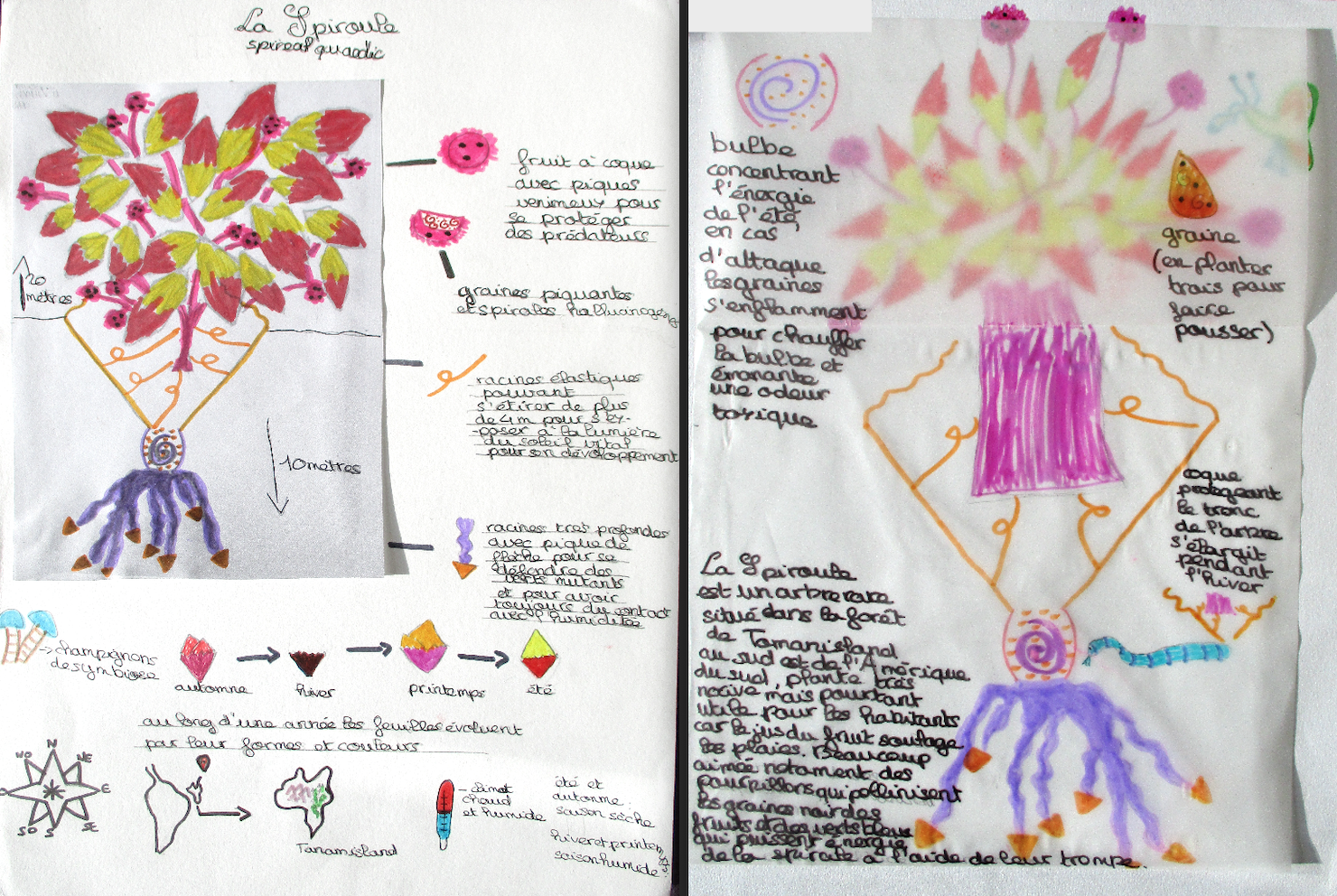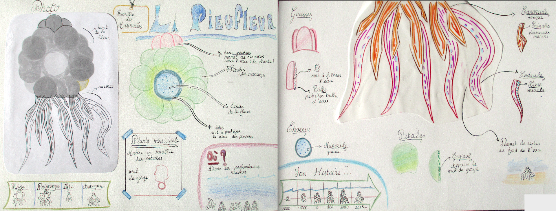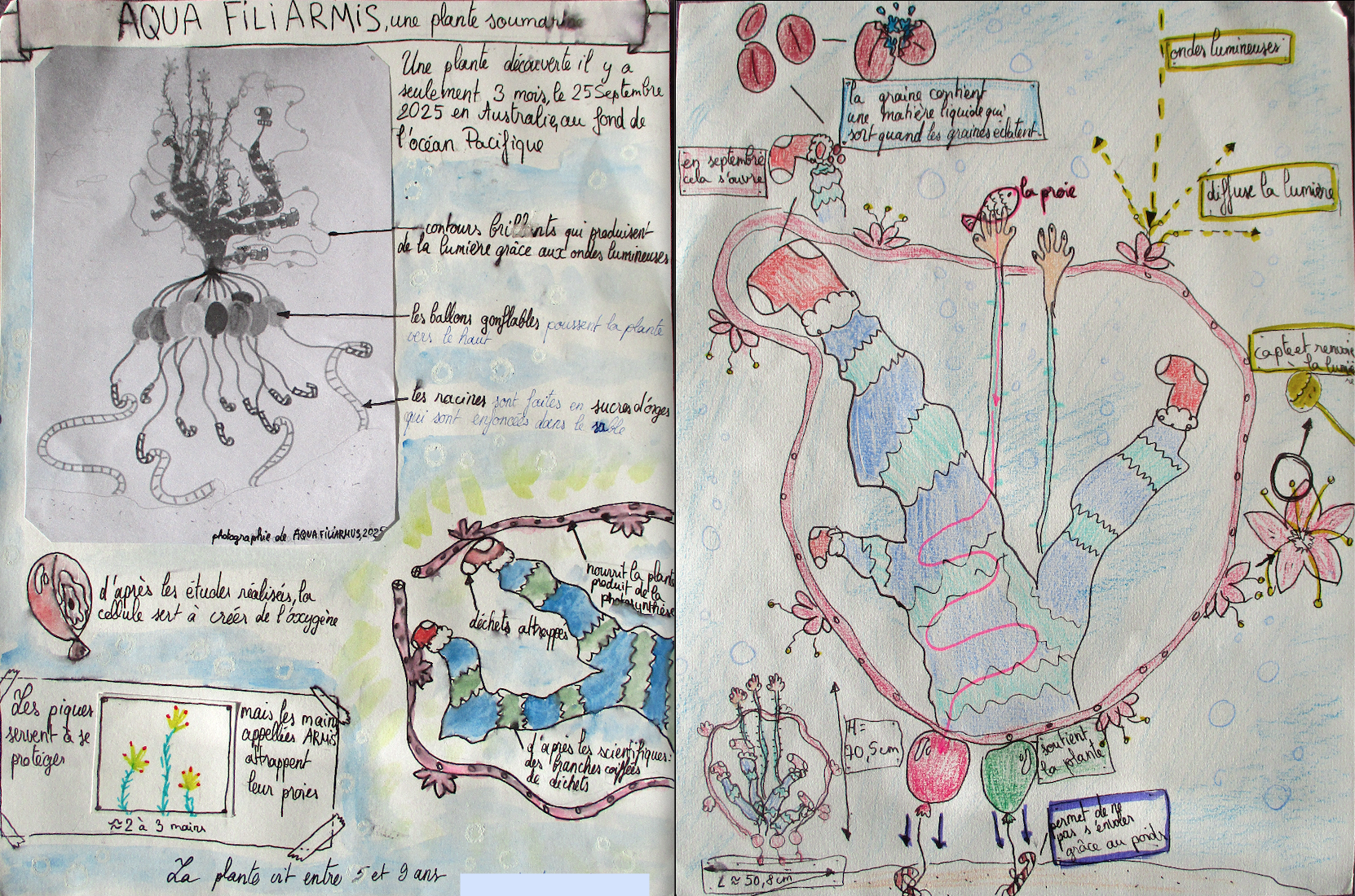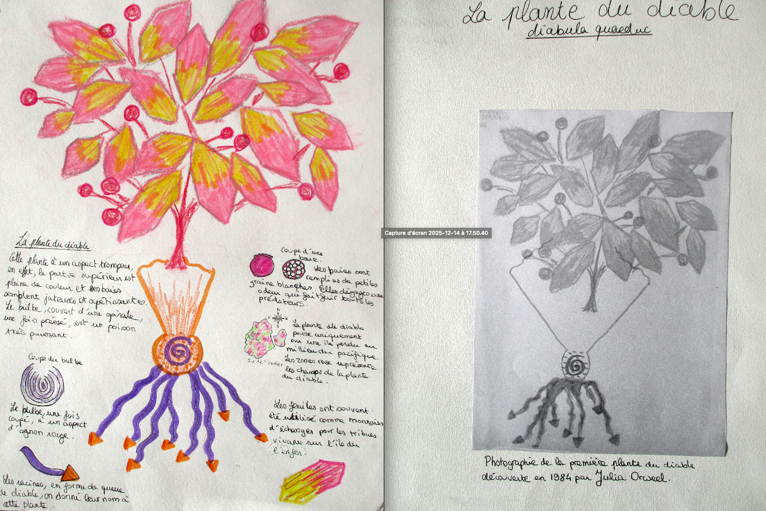 Les 4E, 4M, 4D ont découvert d’étranges plantes issues d’hybridation entre deux dessins puis les 4E et 4M ont poursuivi leurs découvertes « scientifiques » en réalisant une planche botanique et photographié, en binôme, leurs réalisations en relief mise en scène dans l’espace du collège. La flore du collège est vraiment surprenante…